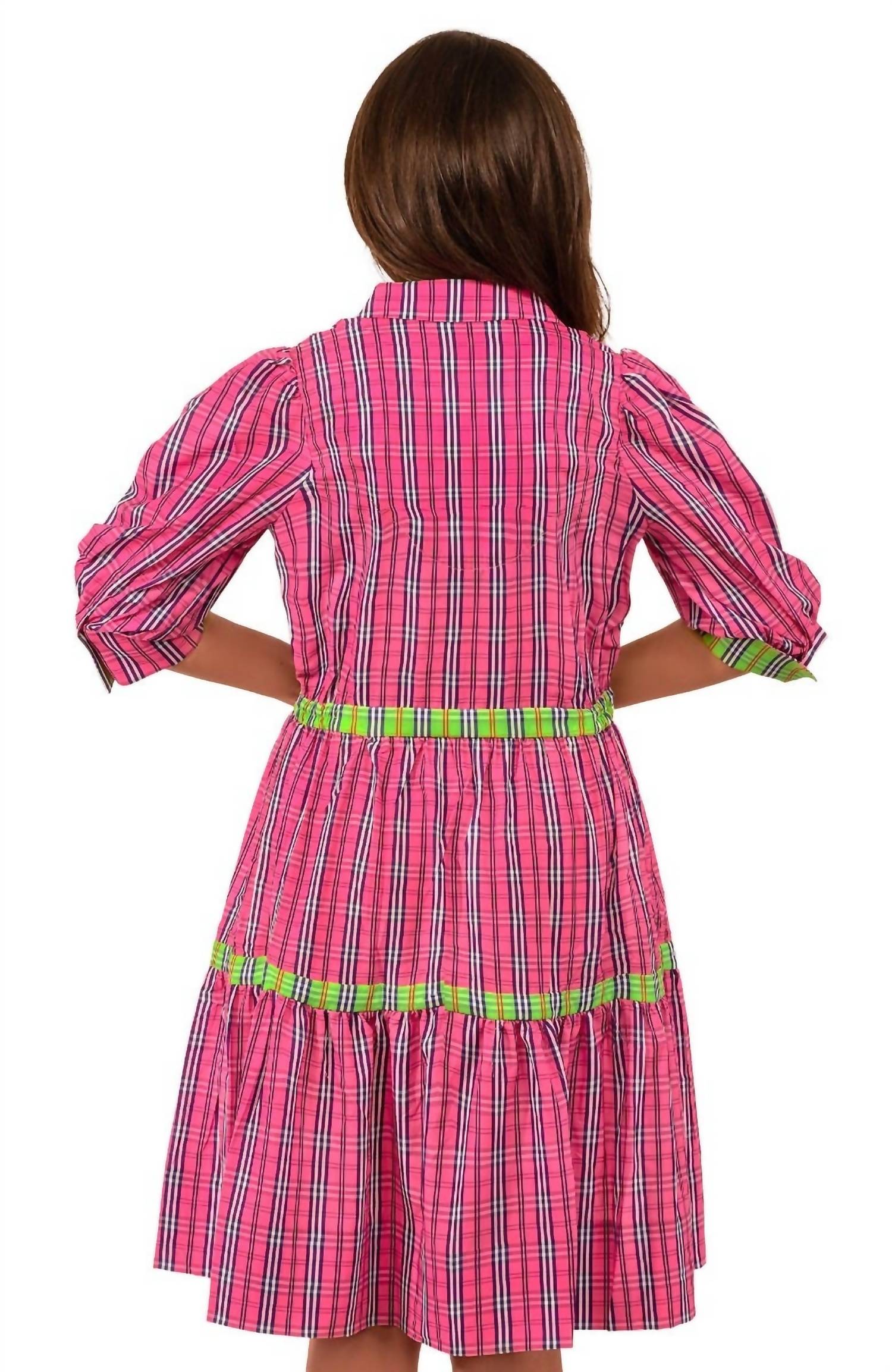O tipo de vestido fácil e elegante que você usará durante toda a temporada. Comprimento de 36" Mangas 3/4 com ombros franzidos Saia franzida em camadas Corpete plissado Inserções elásticas ocultas na cintura Bolsos nas costuras laterais Tecido coordenado Painel interno das costas / Carcela frontal / Gola interna / Punhos Bainha de 4"