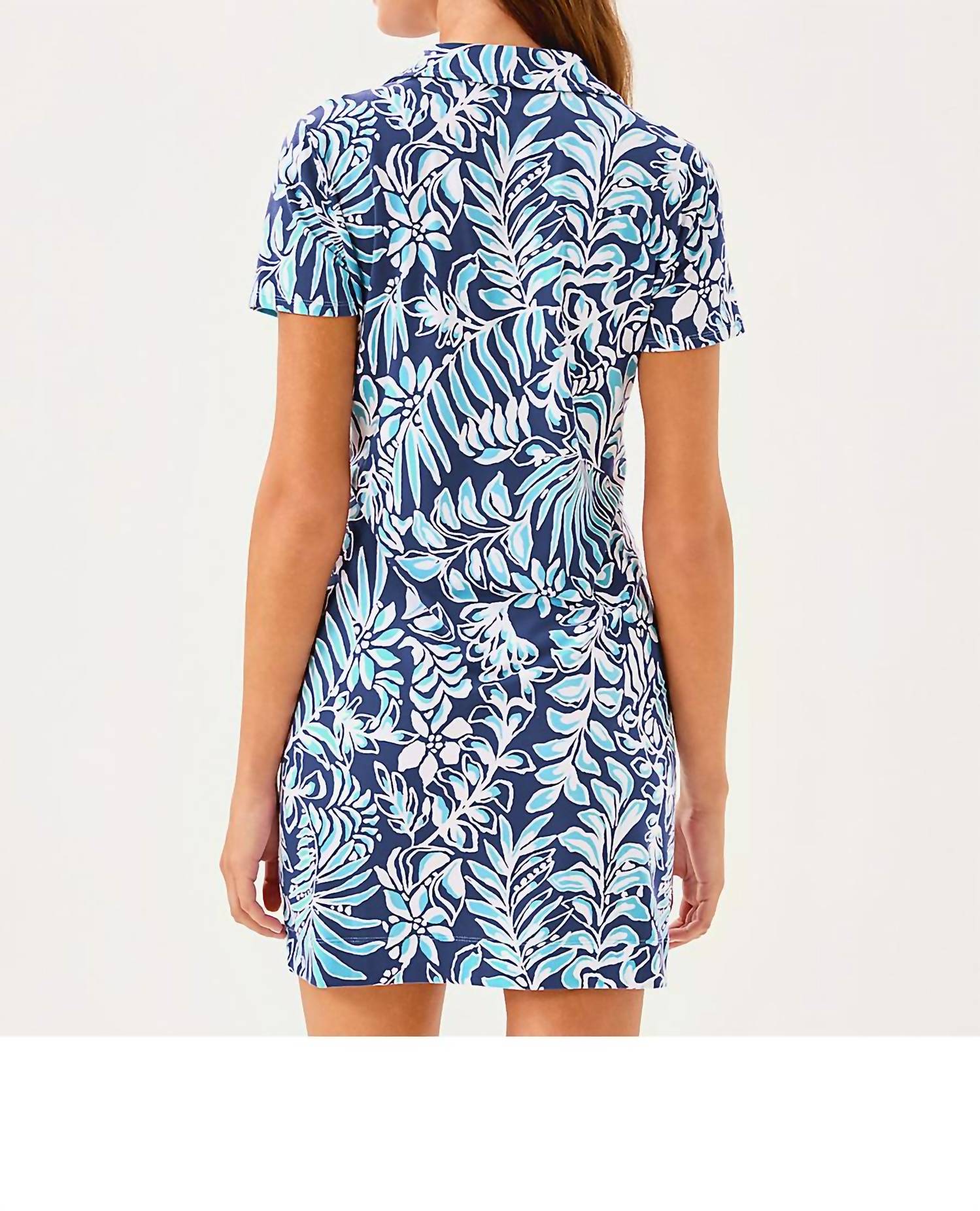 The kind of easy and flattering dress you'll be reaching for all season long. Introducing the Dune UPF 50+ Short Sleeve Dress by Lilly Pulitzer, a perfect choice for stylish summer days. This popover shirtdress, crafted from polyester, boasts a straight fit with short sleeves and a small chest pocket. Its 35-inch length from shoulder to hem ensures a flattering silhouette. This pull-on dress is imported and designed with a vibrant pattern, and it is machine washable for easy care.