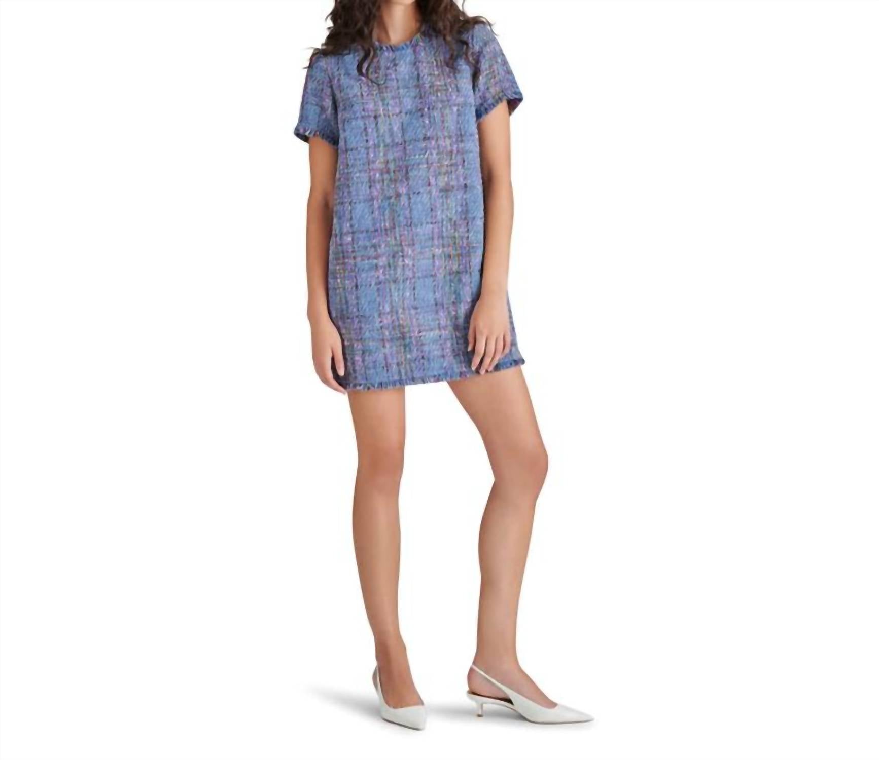 O minivestido perfeito para os meses mais quentes. Experimente a elegância vibrante do Vestido Ria da STEVE MADDEN, uma peça deslumbrante em Azul Multicolorido, criada para a mulher moderna. Este minivestido texturizado apresenta mangas curtas e uma elegante gola redonda, tornando-o perfeito para uma variedade de ocasiões. Confeccionado em poliéster de alta qualidade, possui um prático fecho de zíper. Cuidados: Lavar à mão e secar na horizontal.