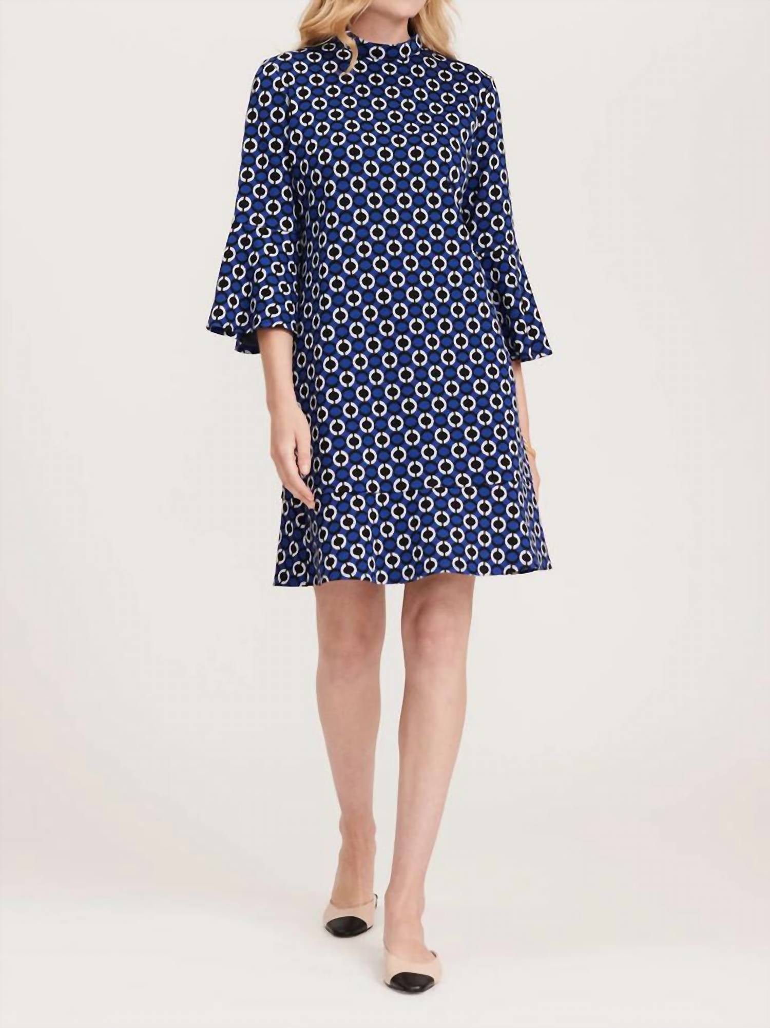 Step into sophistication with the Mindy Jacquard Mini Dress by Tyler Boe, a perfect choice for your holiday party wardrobe. This boho chic shift dress in a striking blue features a modern mockneck and three-quarter sleeves. Crafted from quality polyester, it boasts a sleek zip closure. For care, simply machine wash and lay flat to dry.