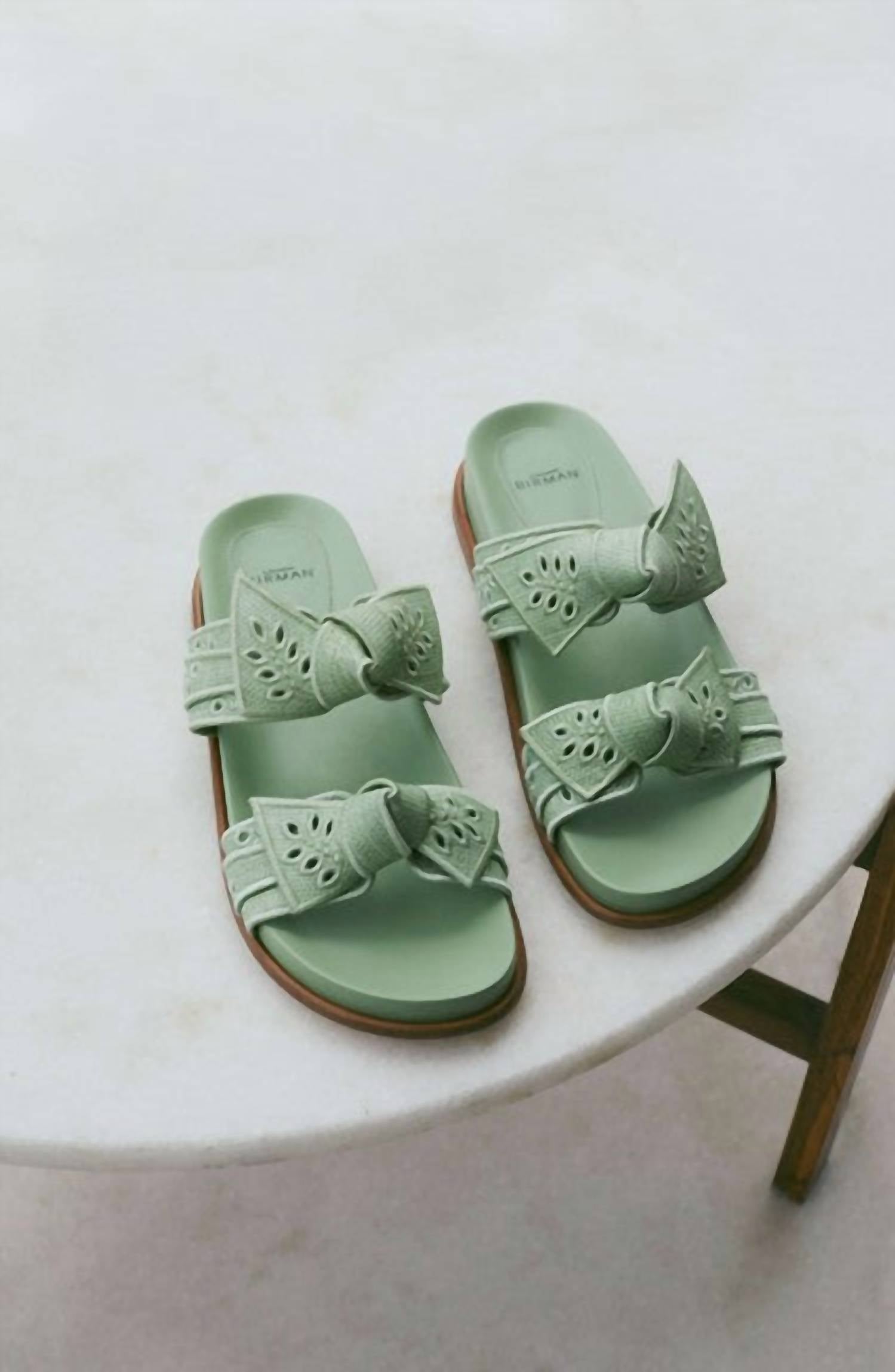 Vestidos esvoaçantes, calças cropped e até macacões... esta sandália combina com todos eles! Apresentamos a Sandália Feminina Maxi Clarita Bordada da Alexandre Birman, o toque de cor perfeito para o seu guarda-roupa de primavera e verão. Estas sandálias rasteiras verde-retrô apresentam detalhes bordados em nós, característicos do estilo exclusivo da marca. Com bico quadrado e salto baixo de menos de 2,5 cm, elas combinam as tendências do streetwear com o conforto ideal para as férias. Combine-as com um vestido ou uma combinação casual de jeans e blusa para um look chique em todas as estações.