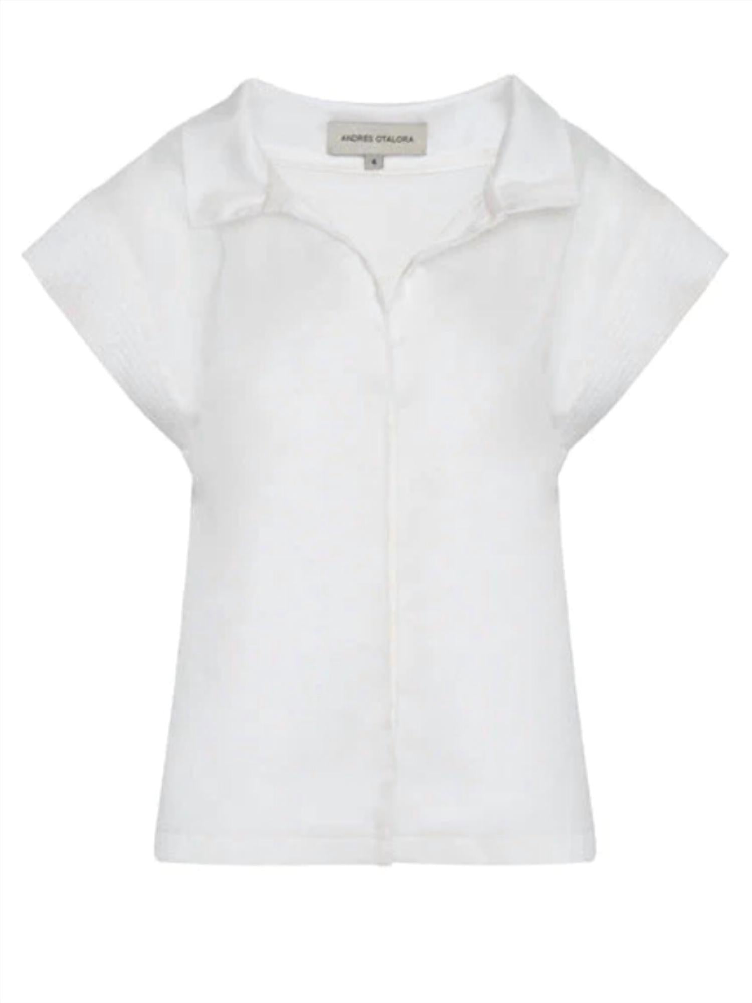 Combine isso com seus jeans e chinelos favoritos para sua próxima noite entre amigas. Apresentamos a Blusa Mahal, de Andres Otalora, uma adição chique a qualquer guarda-roupa com seu design preppy e sólido em off-white. Confeccionada em 100% algodão, esta blusa de manga curta é uma peça essencial. Fabricada na Colômbia, possui uma gola estilosa e um fecho prático. Para maior durabilidade, lave somente a seco.