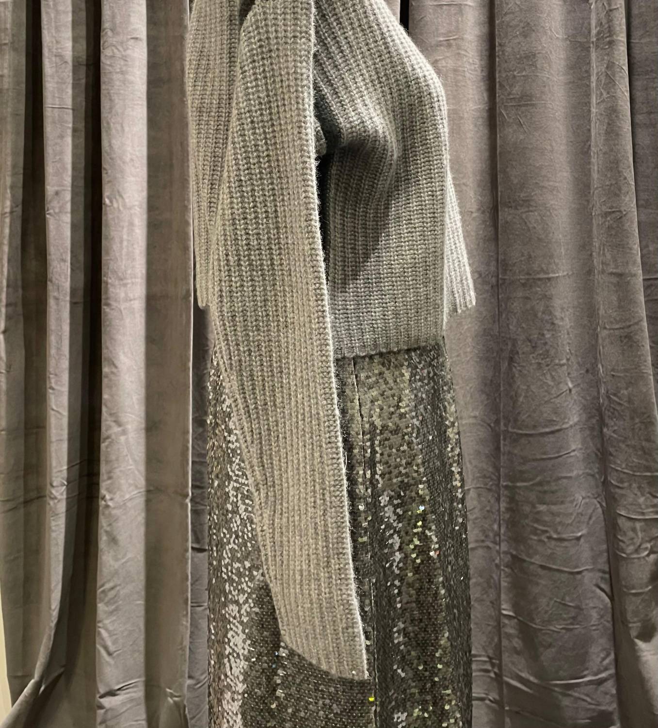 A classic staple that every closet needs. Elevate your wardrobe with the Women's Cashmere Soba Funnel Neck Sweater by Brazeau Tricot, an embodiment of luxury and style. This exquisite steel-colored piece features long sleeves and a chic turtleneck that exudes sophistication. Crafted from the finest cashmere, it's designed for comfort and warmth, adding an elegant flair to any dinner party ensemble. Closure: Pull on. Care: Machine wash.