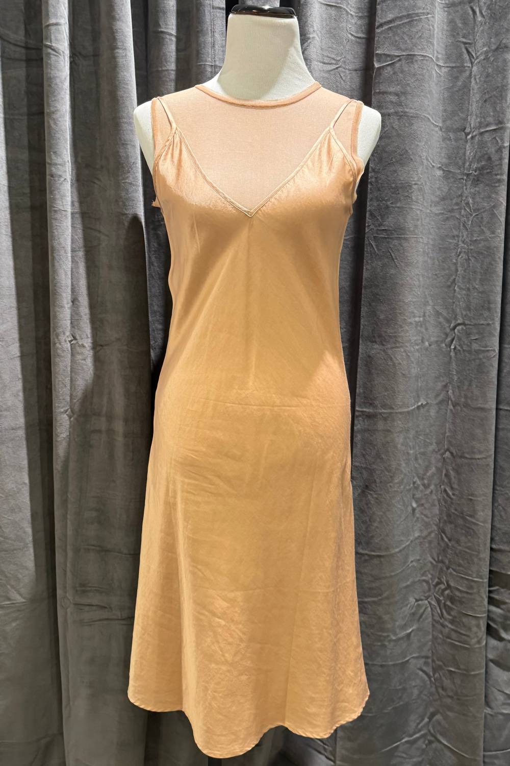 The perfect length dress does exist. Introducing the Women's Tulle Double Midi Dress by Brazeau Tricot, a sophisticated piece in a stunning copper hue perfect for any elegant occasion. Designed with a feminine A-line silhouette and a classic crewneck, this sleeveless dress effortlessly compliments any minimalist wardrobe. Crafted from delicate tulle for a graceful look, this mid-length dress enhances your style for a spring dinner party or Easter celebration. Closure: Pull on. Care: Hand wash.