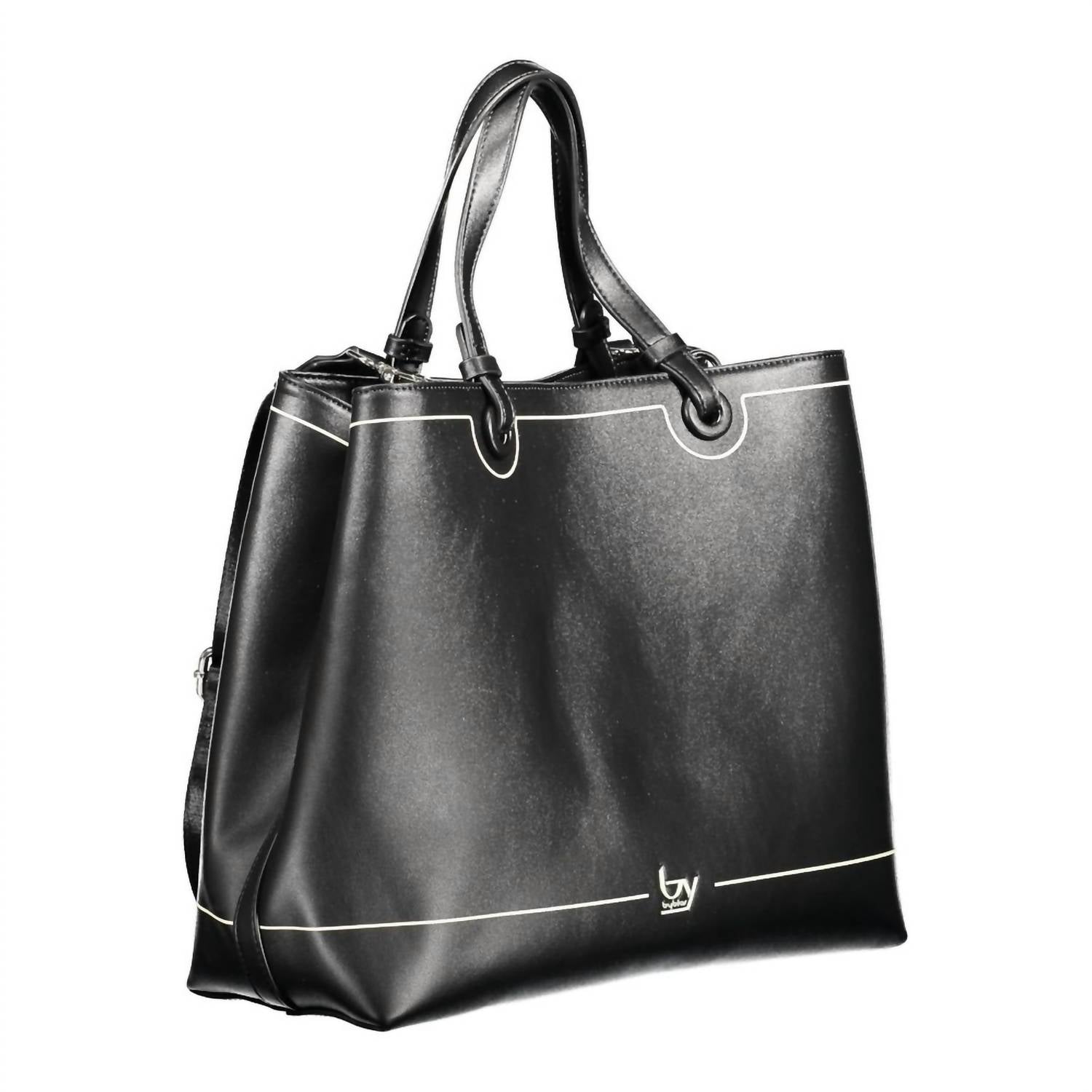 Meet the Women's Polyurethane Handbag by Byblos, designed to merge functionality with style in sleek Nero. Crafted from 100% polyurethane and originating from China, this bag features two handles and an adjustable, removable strap for versatile carrying options. It boasts secure zip and snap closures with dual compartments and multiple interior pockets for optimal organization. Embrace luxury with the bold Byblos logo, making it a perfect choice for the fashion-forward individual.
