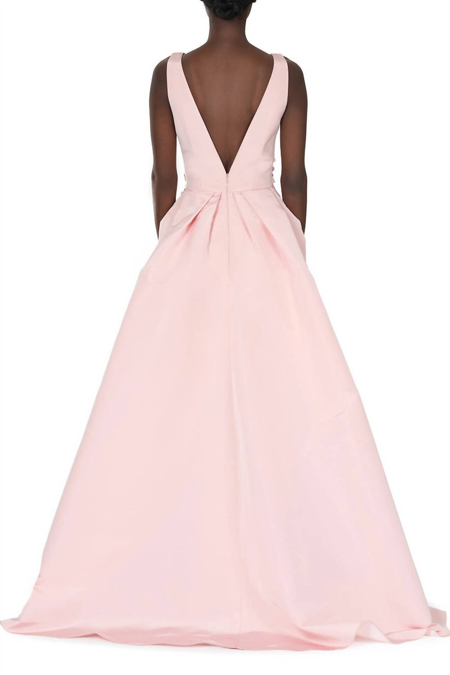 A maxi dress that is just as cute as it is comfortable. Elevate your evening event wardrobe with the Women's Embellished A-Line Gown by Carolina Herrera, perfect for making a statement. This sleeveless gown in a soft blush color features a V-neckline, adding elegance to its textured, A-line silhouette. The quietly luxurious design is ideal for spring occasions and is finished with a discreet zip closure for easy wear. Please note that specific care instructions are not provided.