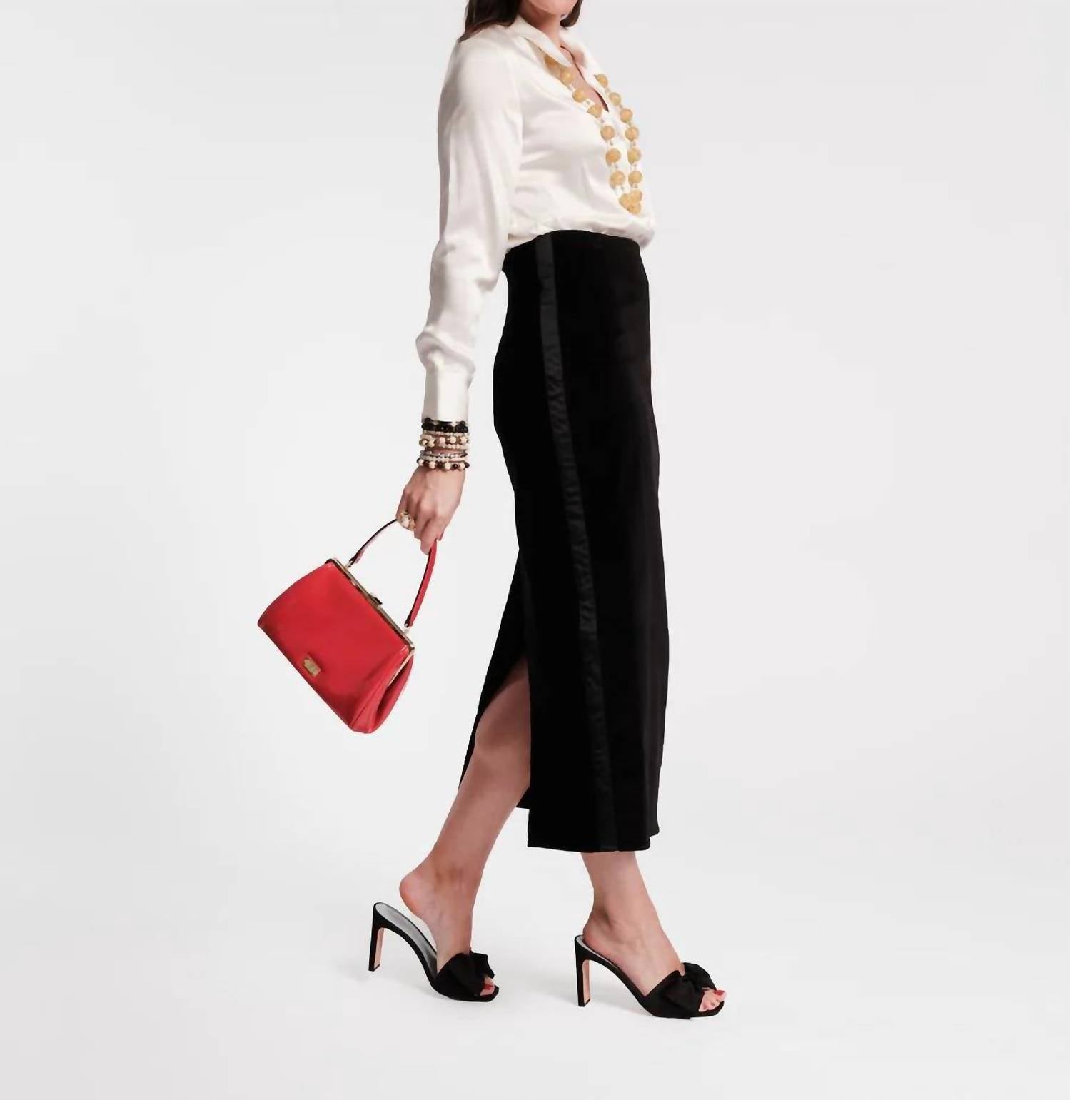 Eleve o seu look black-tie com a Saia Longa Tuxedo da Frances Valentine, uma peça essencial em preto elegante. Esta saia feminina, confeccionada em luxuoso tecido 98% algodão, 2% elastano e forrada com 100% poliéster, oferece uma elegante silhueta lápis de cintura alta com listras de cetim em ambos os lados. Fabricada na Índia, possui fecho de zíper na parte de trás para facilitar o uso. Cuidados: Lavar à mão e secar no varal para manter seu charme sofisticado.