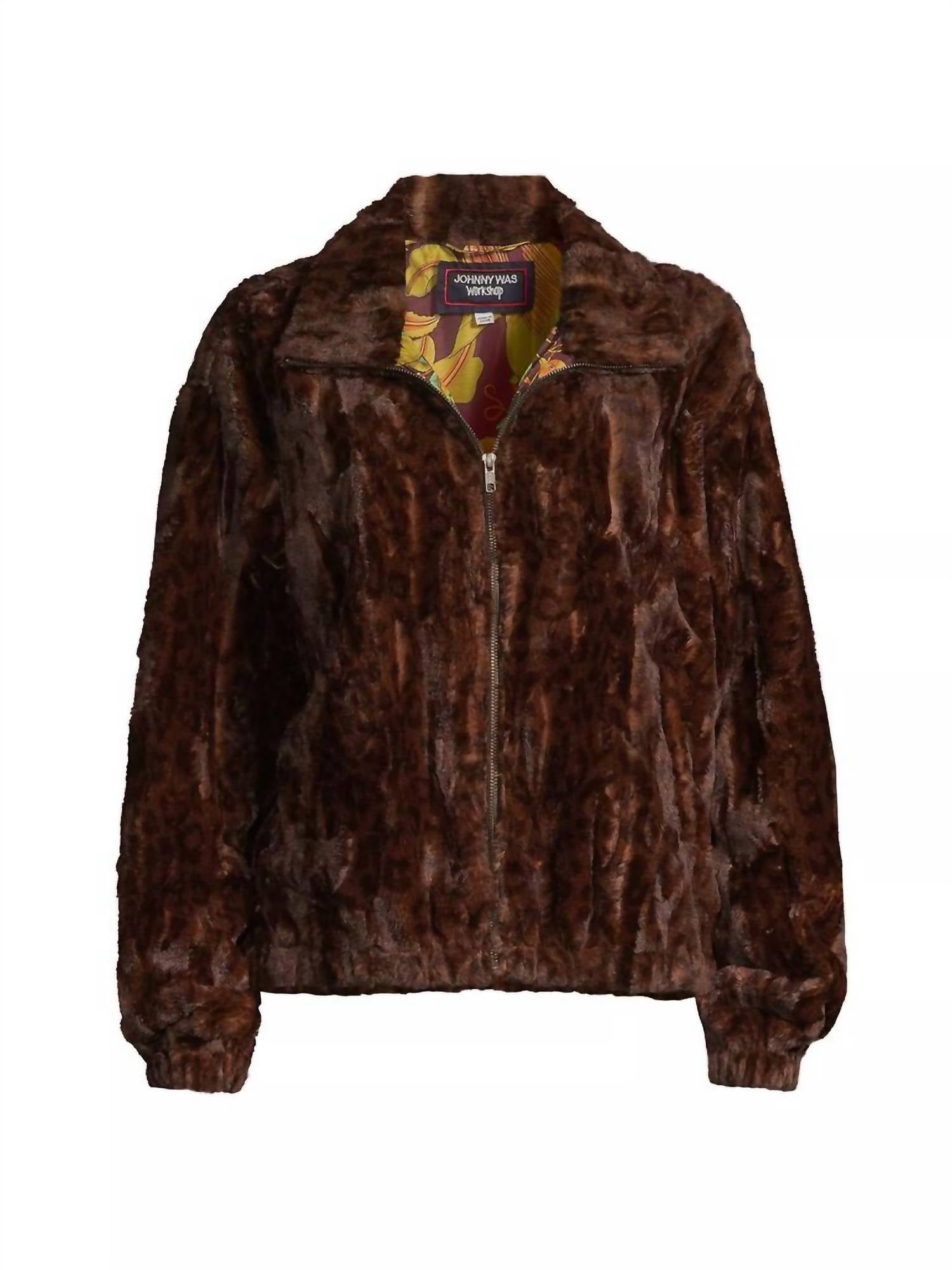 Não há nada mais legal do que esta jaqueta bomber de inspiração vintage. Eleve seu guarda-roupa de inverno com a Jaqueta Bomber Johnny Was Jaguar de Pele Sintética, uma peça deslumbrante com estampa animal e uma rica paleta de cores marrom e preto. Perfeita para festas à fantasia ou ocasiões festivas, esta jaqueta possui mangas compridas com punhos elásticos e gola ampla. Confeccionada em 100% poliéster, oferece um caimento confortável com comprimento de 66 cm e fechos práticos com zíper frontal. Importada e forrada para maior aquecimento, requer lavagem à mão para manter seu charme luxuoso.