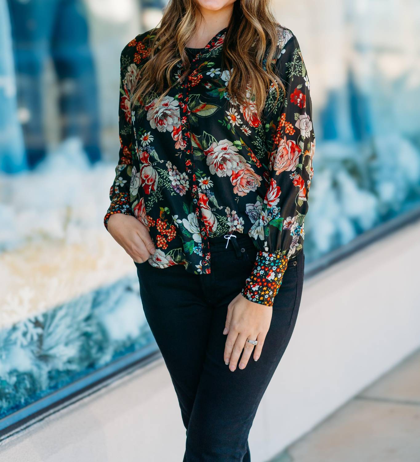 Apresentamos a Blusa Yrene da Johnny Was, uma obra-prima da elegância boêmia no deslumbrante tom Attar. Esta blusa feminina apresenta mangas compridas e uma requintada estampa floral, projetada para elevar o seu guarda-roupa de primavera. O decote da blusa adiciona um toque de sofisticação, tornando-a ideal para ir à igreja e outras ocasiões especiais. Instruções de cuidado não são especificadas.