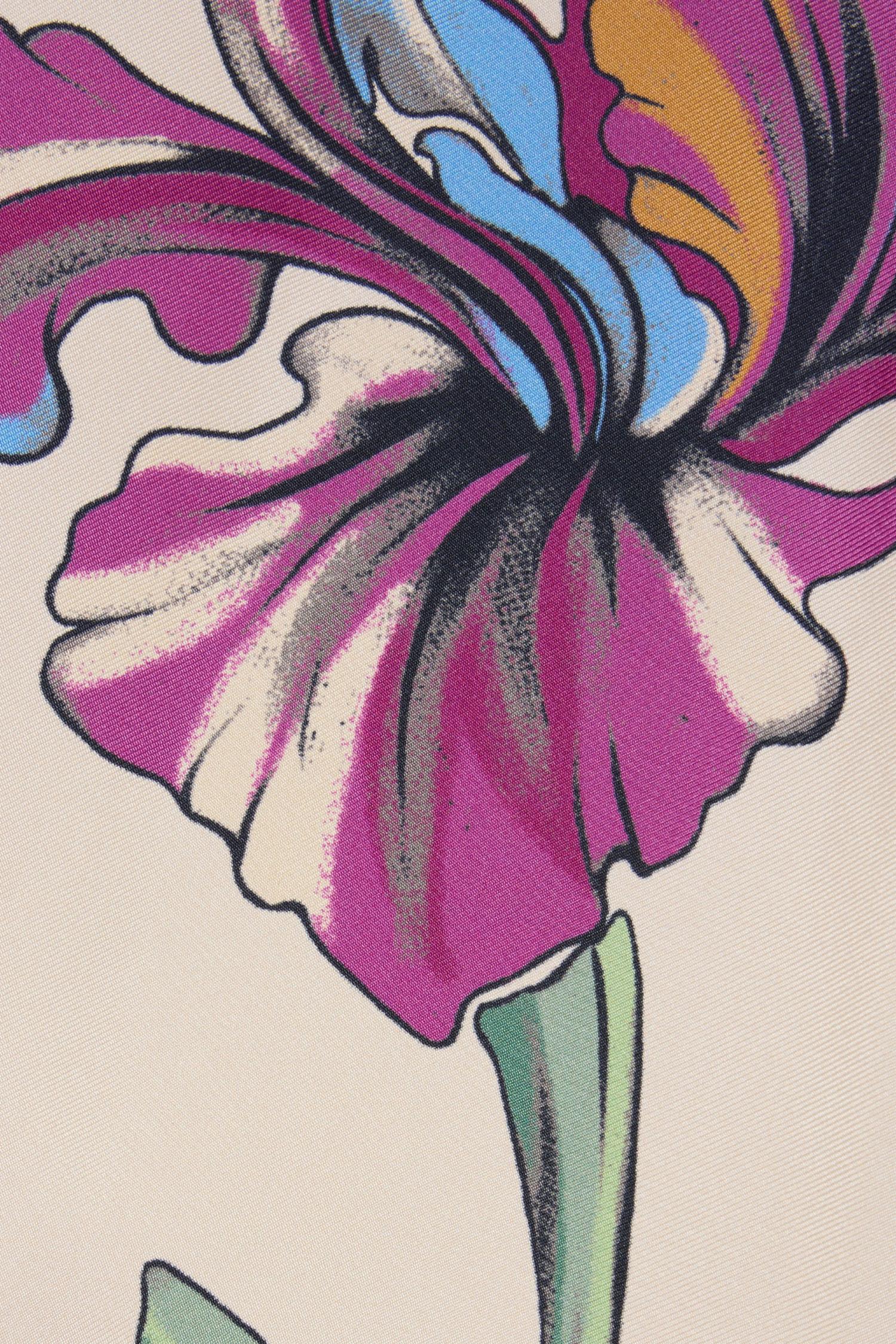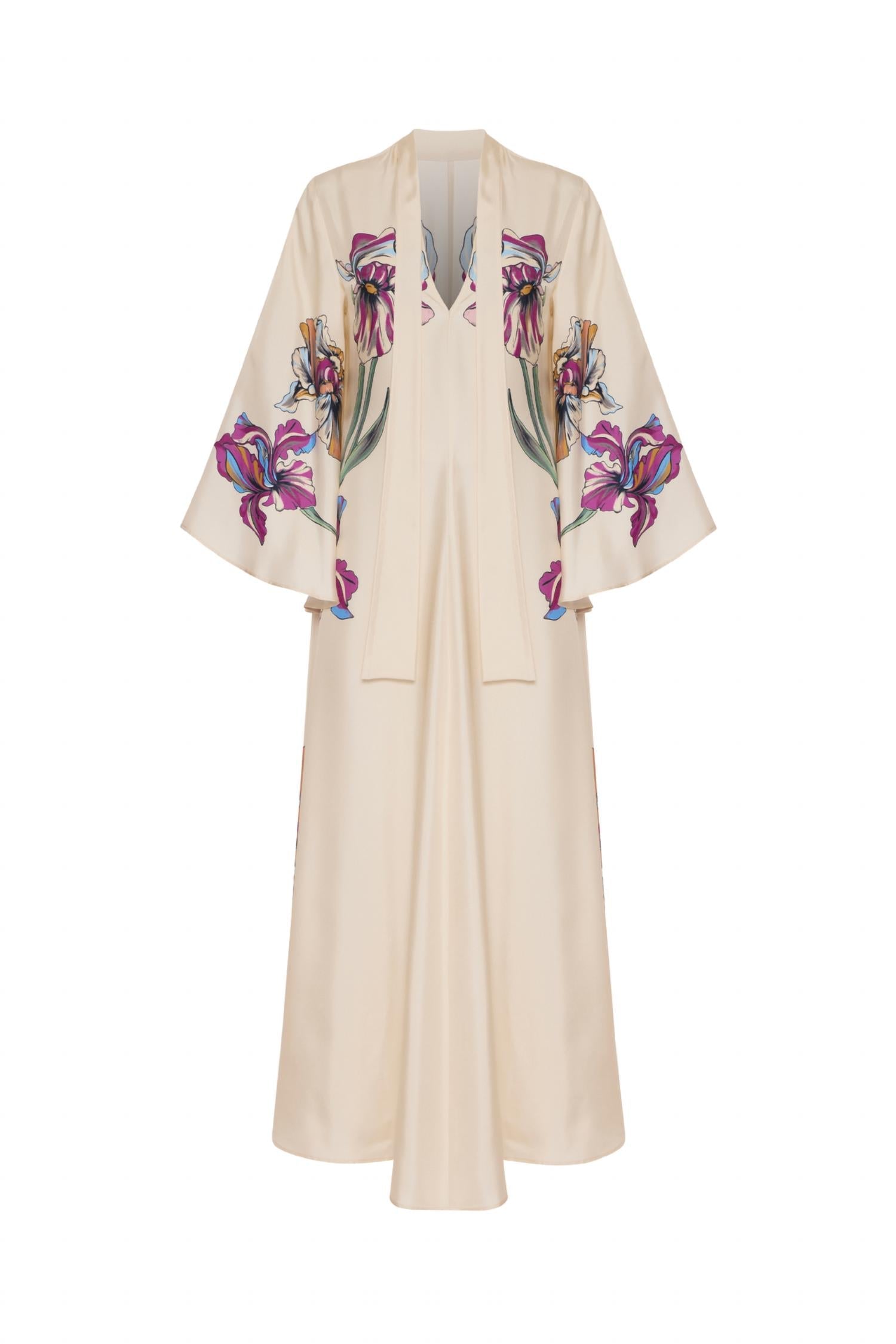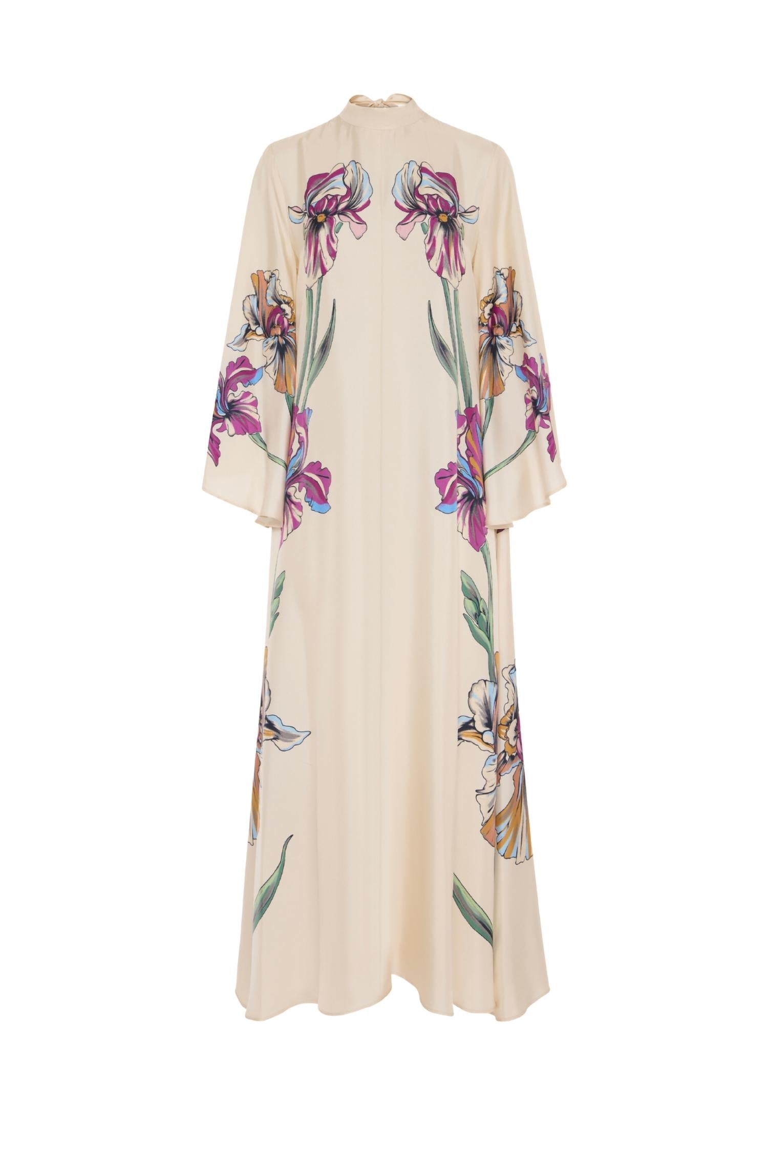 Cute and comfortable, this long sleeve dress has it all. Indulge in elegance with the La DoubleJ Women's Magnifico Dress in Iris Placée, a statement piece designed for stylish sophistication. This show-stopping dress features dramatic long draped waterfall sleeves and a chic stand-up collar, enhanced by a long sash at the back for a regal touch. Crafted entirely in Italy from luxurious 100% silk twill, it showcases an exquisite floral pattern that channels a boho chic vibe, perfect for spring vacations. Closure: Button closure.