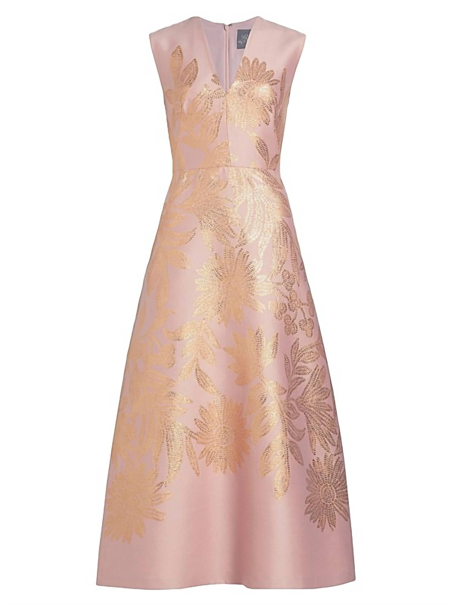 Discover the Women's Blair Midi Dress by Lela Rose, a perfect summer staple that embodies Quiet Luxury. This sleeveless A-line dress in a soft blush floral pattern is ideal for vacation getaways. With a chic V-neckline and a convenient zip closure, it's designed for both comfort and style. Complete your elegant summer wardrobe with this timeless piece.