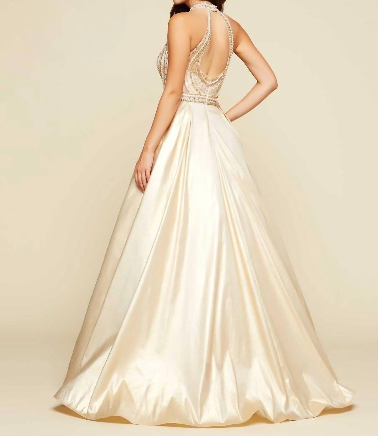 Chame a atenção com o vestido de noite mais fofo e elegante. Apresentamos o Vestido de Baile Halterneck com Ilusão de Contas da MAC DUGGAL, uma escolha deslumbrante para qualquer evento de formatura. Este vestido apresenta um design sem mangas e um decote halter marcante com bordados intrincados para um toque glamouroso. Com corte justo e evasê e costas abertas, ele esbanja elegância por toda parte. O vestido fecha com zíper, está disponível em uma cor dourada deslumbrante e é feito para mulheres que gostam de se destacar.