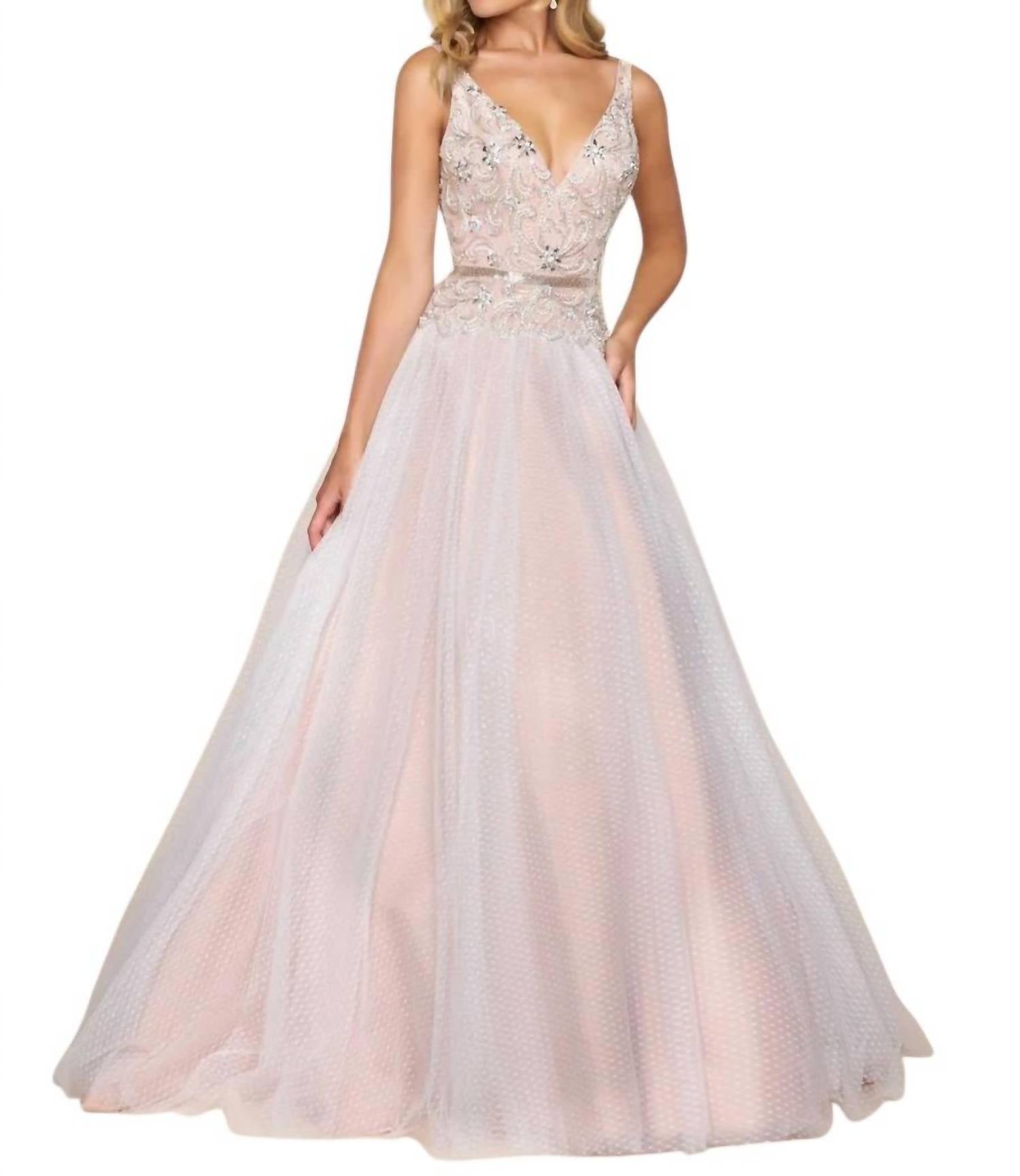 Mac Duggal - Fit and Flare Ball Gown With Lace and Bead Applique
