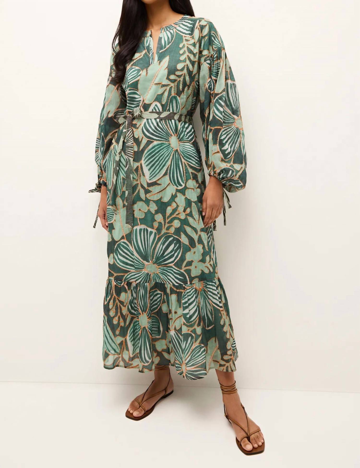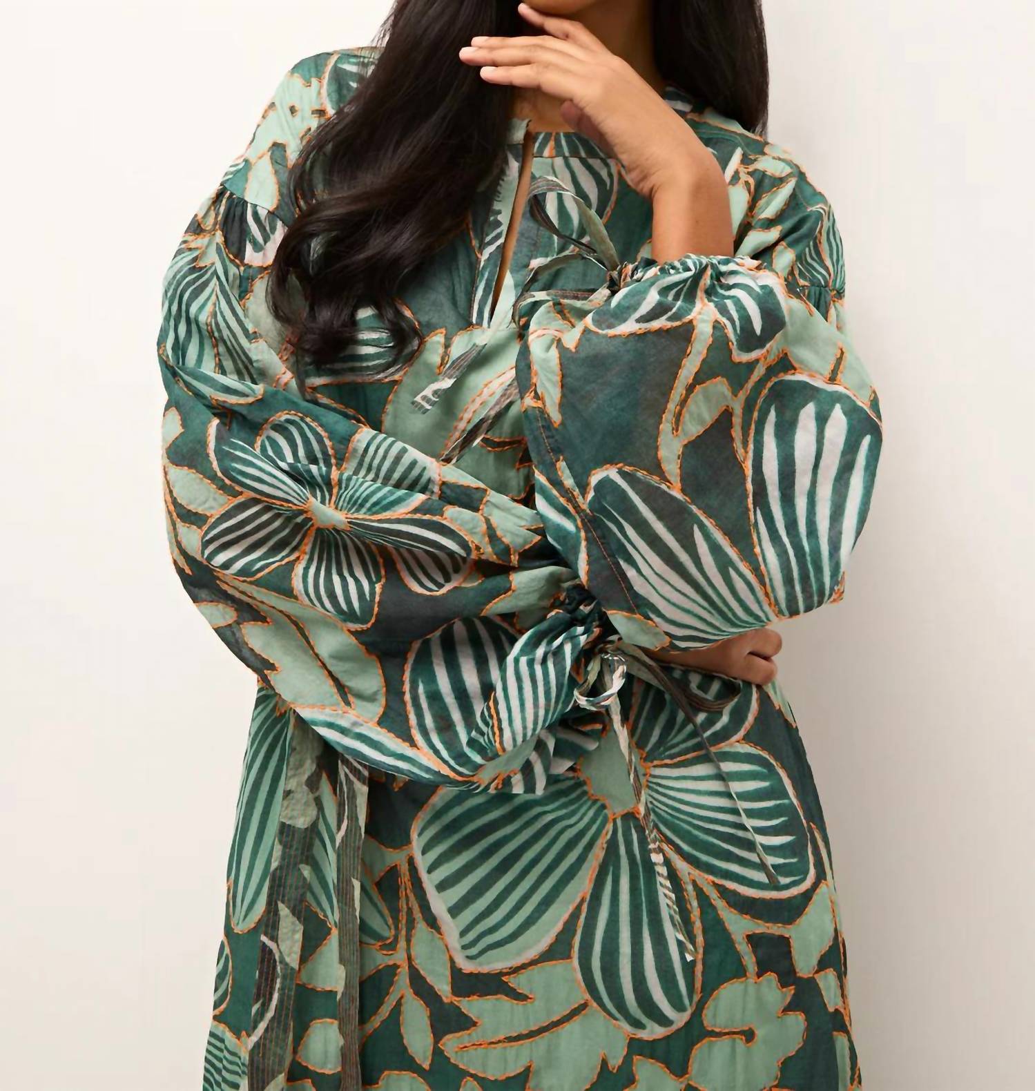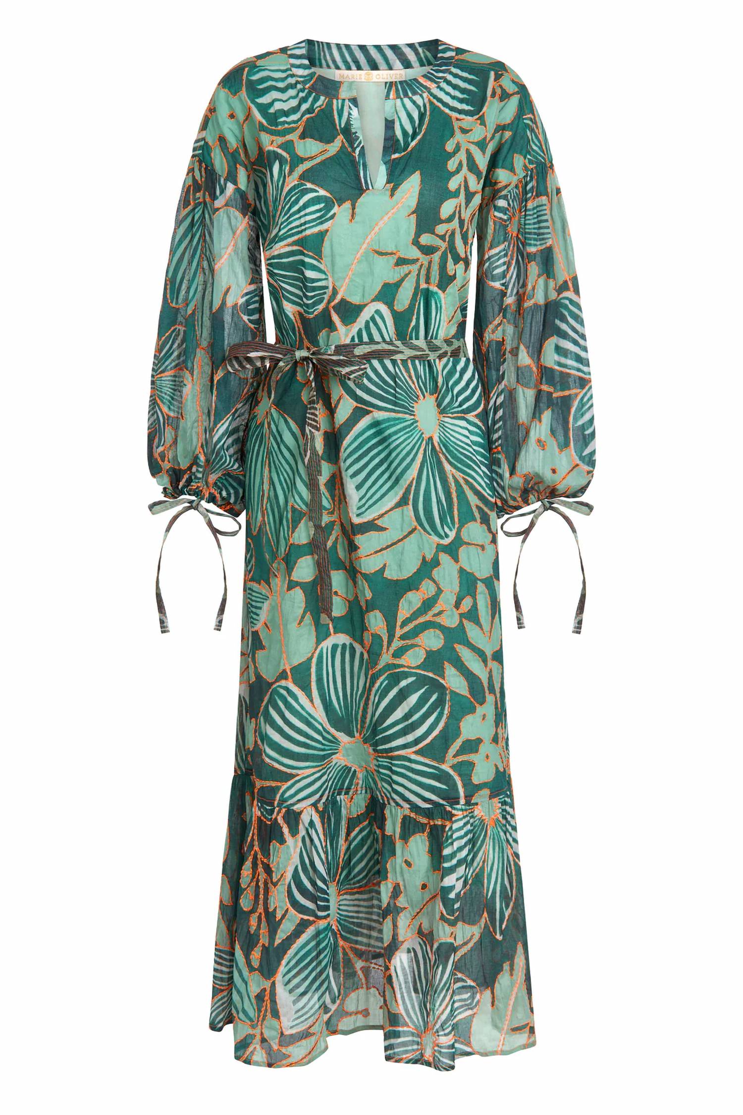 Um vestido longo que é tão fofo quanto confortável. Apresentamos o Vestido Tabitha da Marie Oliver, um deslumbrante kaftan inspirado na primavera, perfeito para quem gosta de vestidos longos. Esta peça elegante apresenta mangas longas tipo balão que se ajustam ao pulso e punhos com amarração para um toque especial. O vestido é confeccionado em organza 100% algodão, ostentando um padrão floral exclusivo e bordados intrincados em laranja feitos por artesãos indianos. Fechamento: Slip-on com colchete na gola frontal. Cuidados: Lavar à máquina separadamente em água fria, em ciclo delicado, secar na horizontal ou optar pela lavagem a seco.