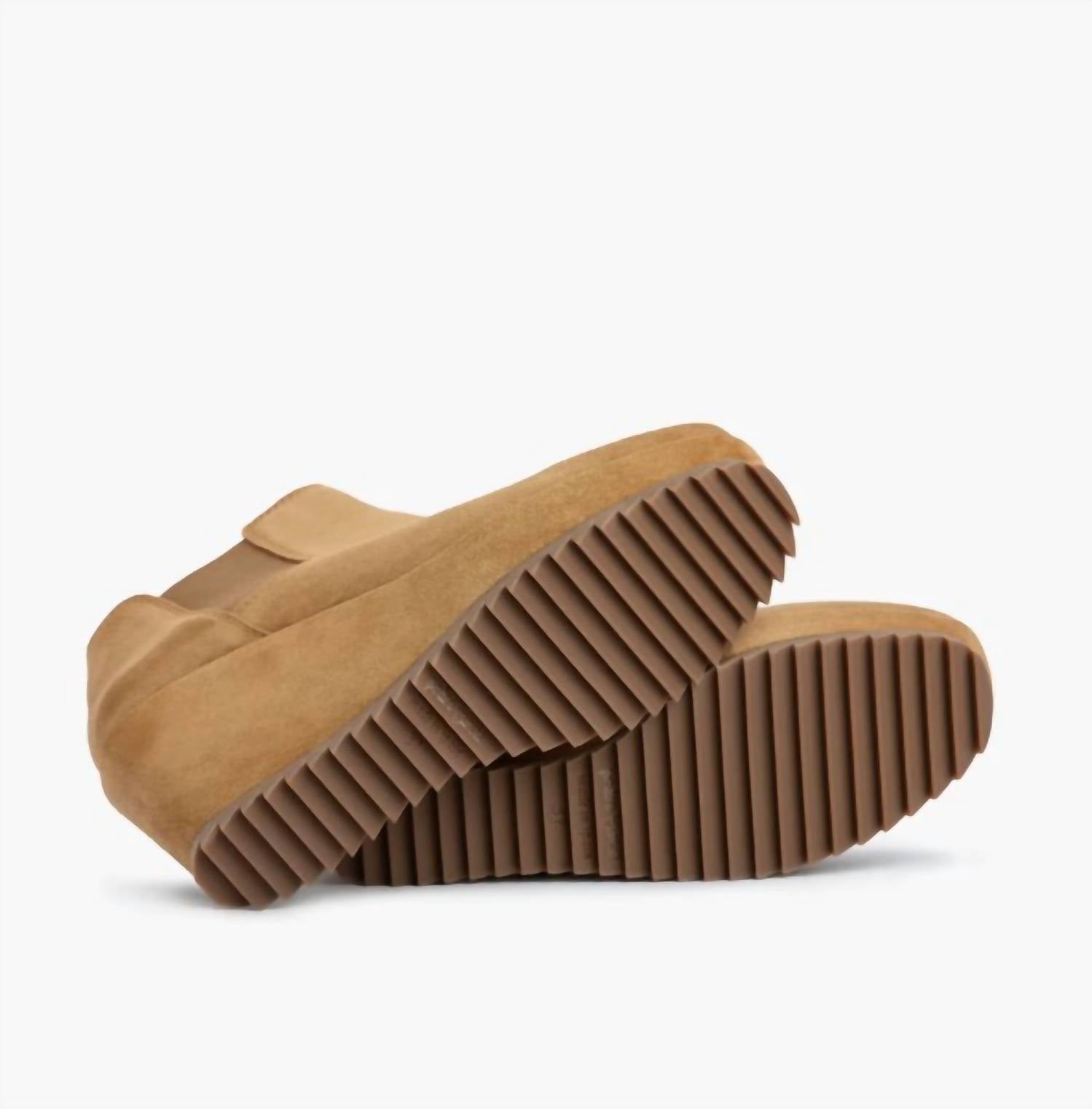 Timeless wedges that will be relevant season after season. Step out in style with the Pedro Garcia Women's Feike Chelsea Wedge Boot in Alpaca Velour. Crafted from luxurious split suede with a cowhide lining, this boot features elastic inserts and an almond toe for a comfortable fit. The mid wedge heel measures 2.3 inches (6 cm), while the platform height is set at 1 inch (2.5 cm) for a chic elevation. Made in Spain with a serrated TPU sole, this versatile boot is a perfect choice for fall occasions and comes with a dust bag for easy storage.