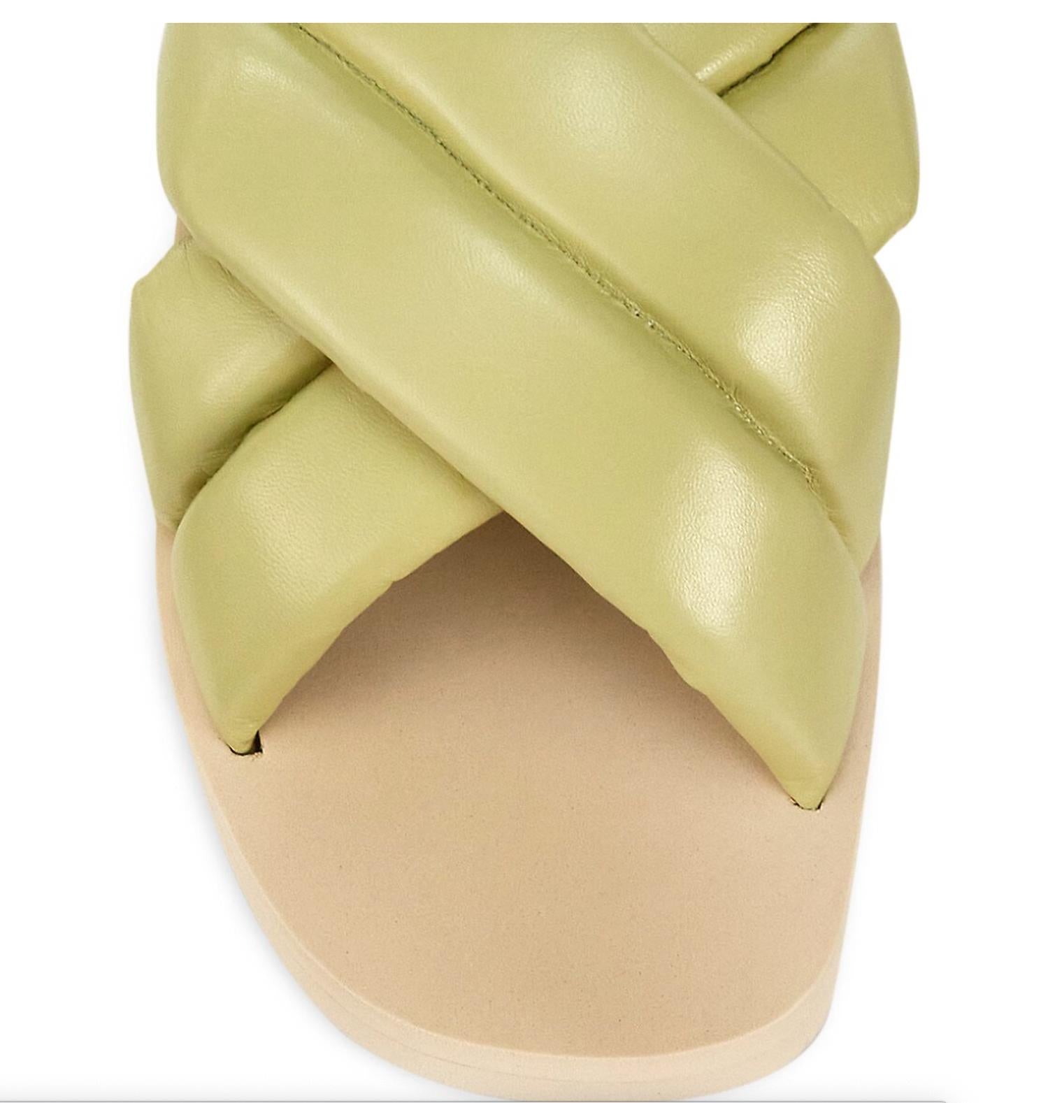 Clássico e elegante, ideal para usar o dia todo. Adoramos esta sandália. Esta sandália acolchoada Float apresenta slides acolchoados cruzados em couro de cordeiro macio. Estilo slip-on, solado de borracha, fabricado na Itália. Plataforma de 3,1 cm (1,25"), 30 mm. Composição: Cabedal 100% em couro de cordeiro. Ajuste: Fiel ao tamanho.