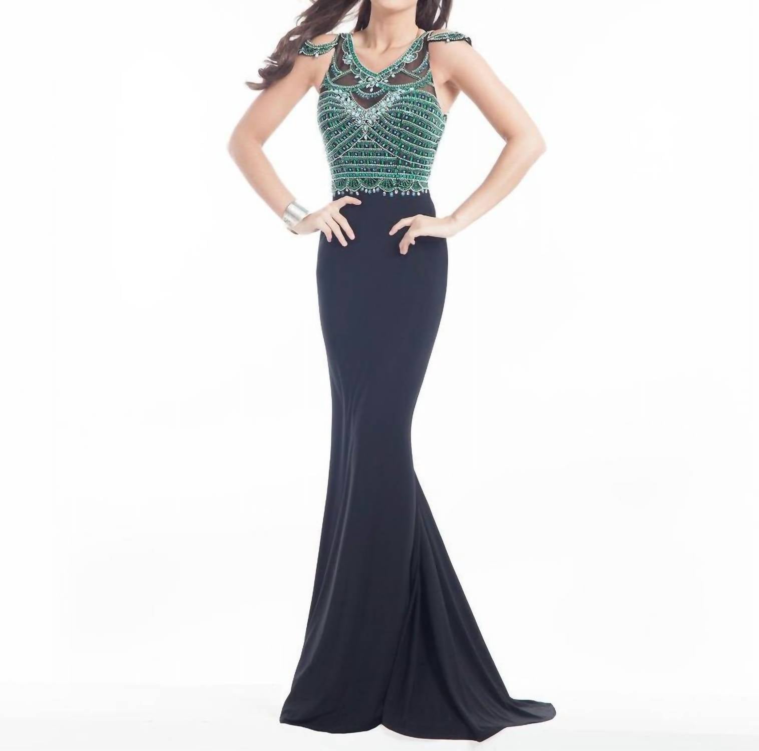Rachel Allan - Beaded Jersey Sheath Evening Gown