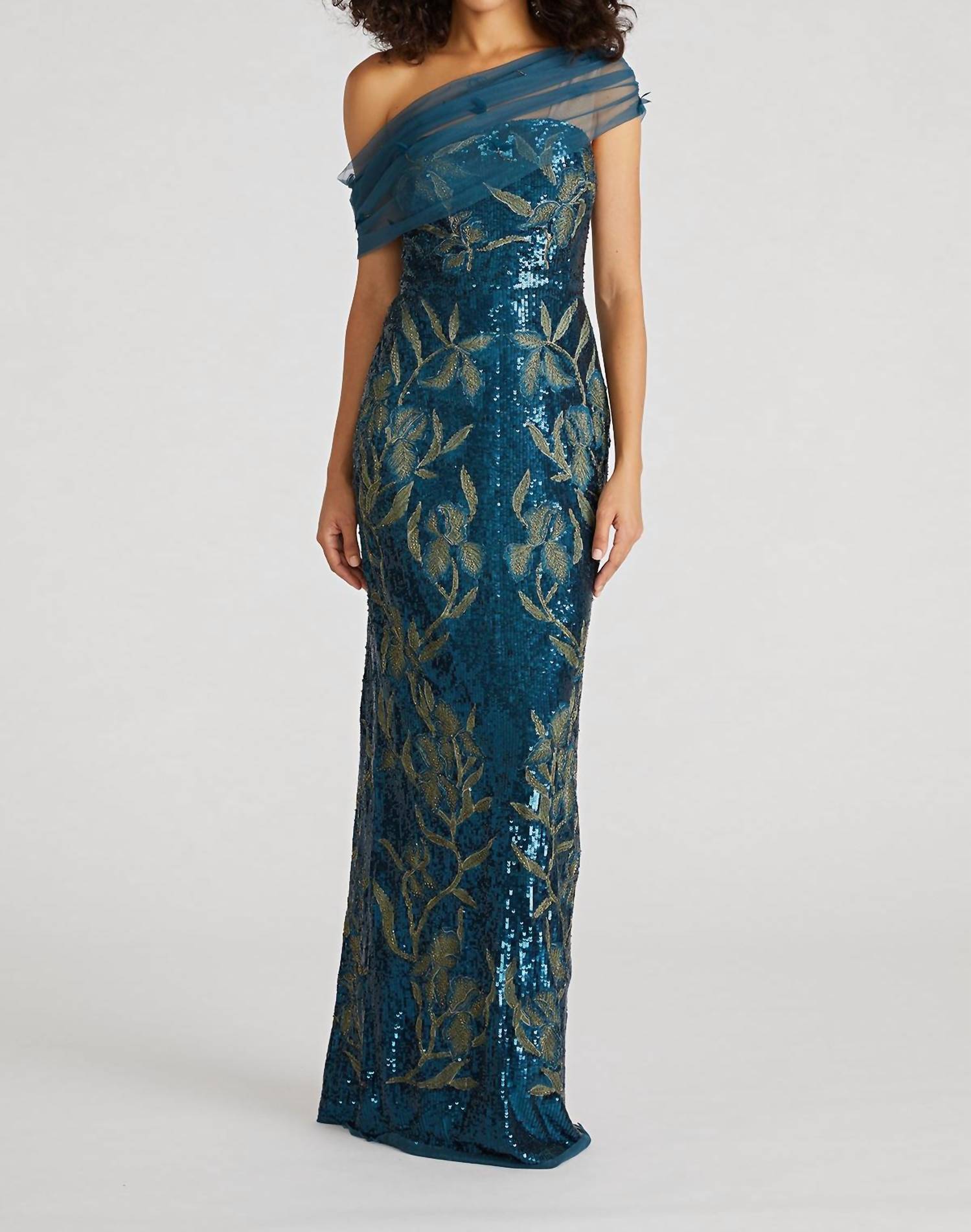Style this maxi with your favorite statement necklace and sandals for the perfect look. Introducing the Women's Jude One Shoulder Dress by THEIA, a statement piece in a stunning Mystic Sage hue. This sleeveless, off the shoulder maxi dress boasts a textured, A-line silhouette perfect for cocktail parties. Its pull-on closure ensures ease of wear, embodying a maximalist trend for the Spring season. Crafted for special occasions, it requires dry cleaning to maintain its luxurious finish.
