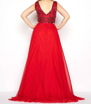 Mac Duggal - Vestido de festa com decote em V profundo e corpete com contas