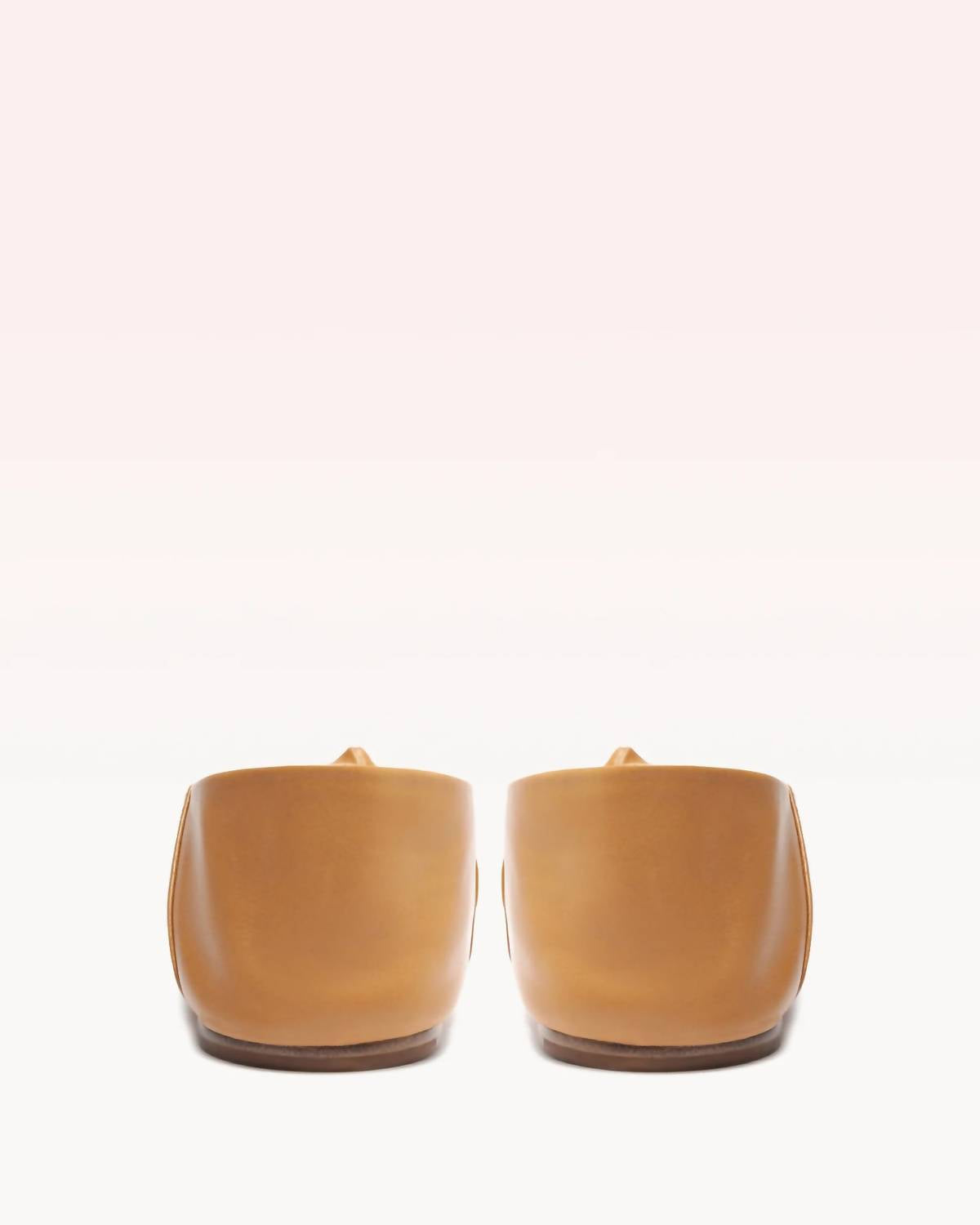 Step into effortless style with the Clarita Collapsible Flat by Alexandre Birman, a modern twist on the classic ballerina in a chic butterscotch hue. Crafted from supple Nappa leather, this flat features a collapsible back for ultimate versatility and comfort. It is adorned with the signature Clarita bow and designed with a round toe and flat heel, measuring 0.5 inches. This minimalist piece is your perfect vacation companion for the summer season.