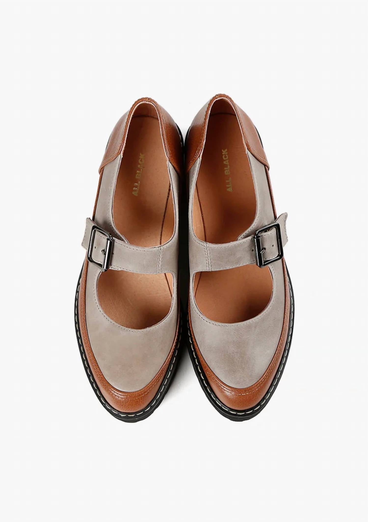 A classic loafer that is both comfortable and polished. Introducing the Women's Buckle Lug Jane Shoes by ALL BLACK, a chic choice for your spring wardrobe. Featuring a round toe and a stylish chunky heel, these grey flats are perfect for evening events. Designed with a medium width and a vintage appeal, they offer both comfort and timeless elegance. Heel height is low, measuring between 1 1/4" and 2", making them an ideal choice for a relaxed yet sophisticated look.