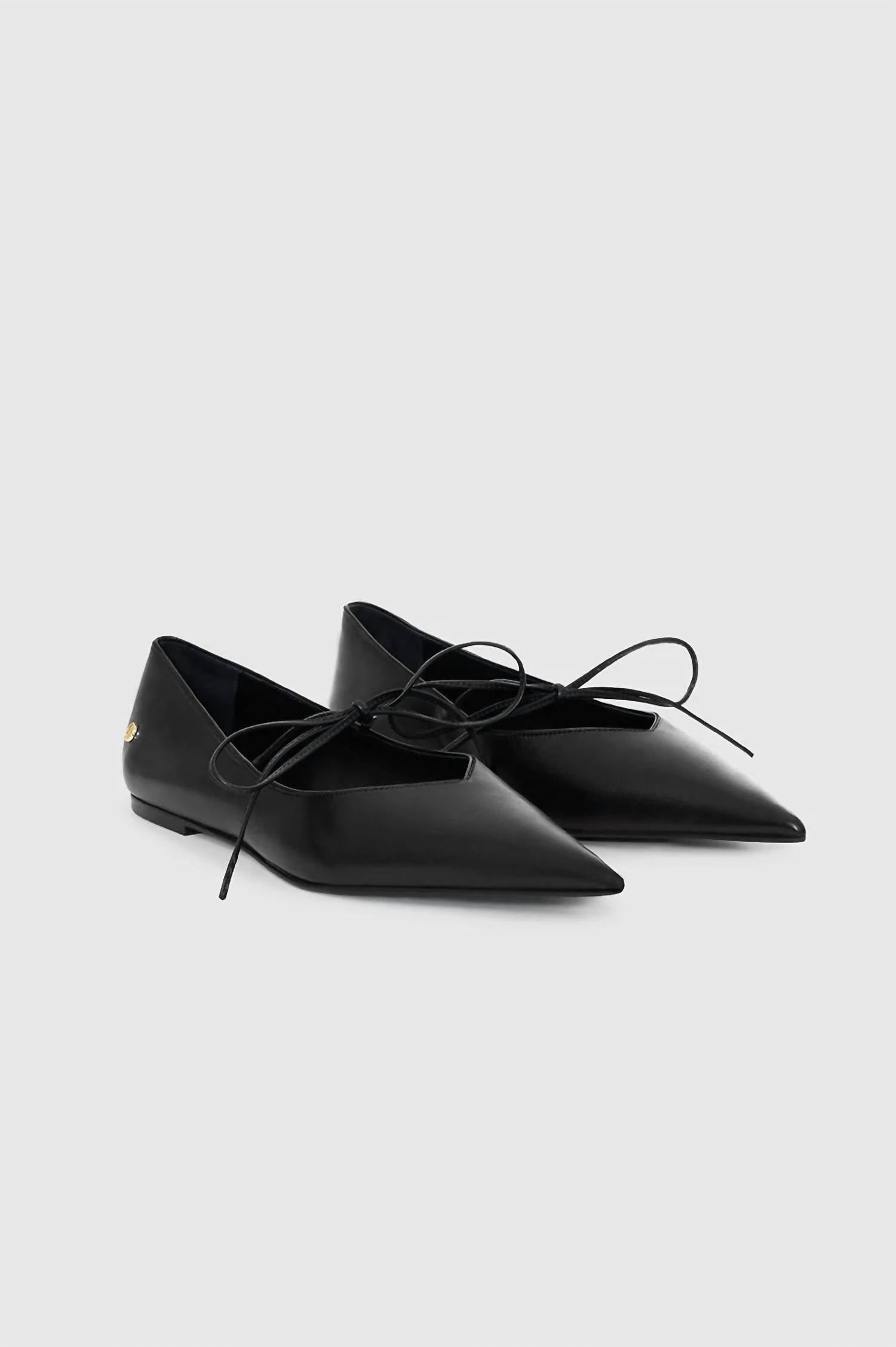 Loafers so versatile you can wear them with just about anything. Discover the Women's Nikki Flats by ANINE BING, expertly crafted from 100% lamb leather for a luxurious finish. Designed with a sharp pointed toe and adorned with a perfectly placed leather bow, these flats exude elegance. Accented with gold-tone ANINE BING hardware at the heel, they feature a flexible outsole for comfort. Material: 100% Lamb Leather. Spot clean. Take your true size; if in between sizes, opt for the next size up.