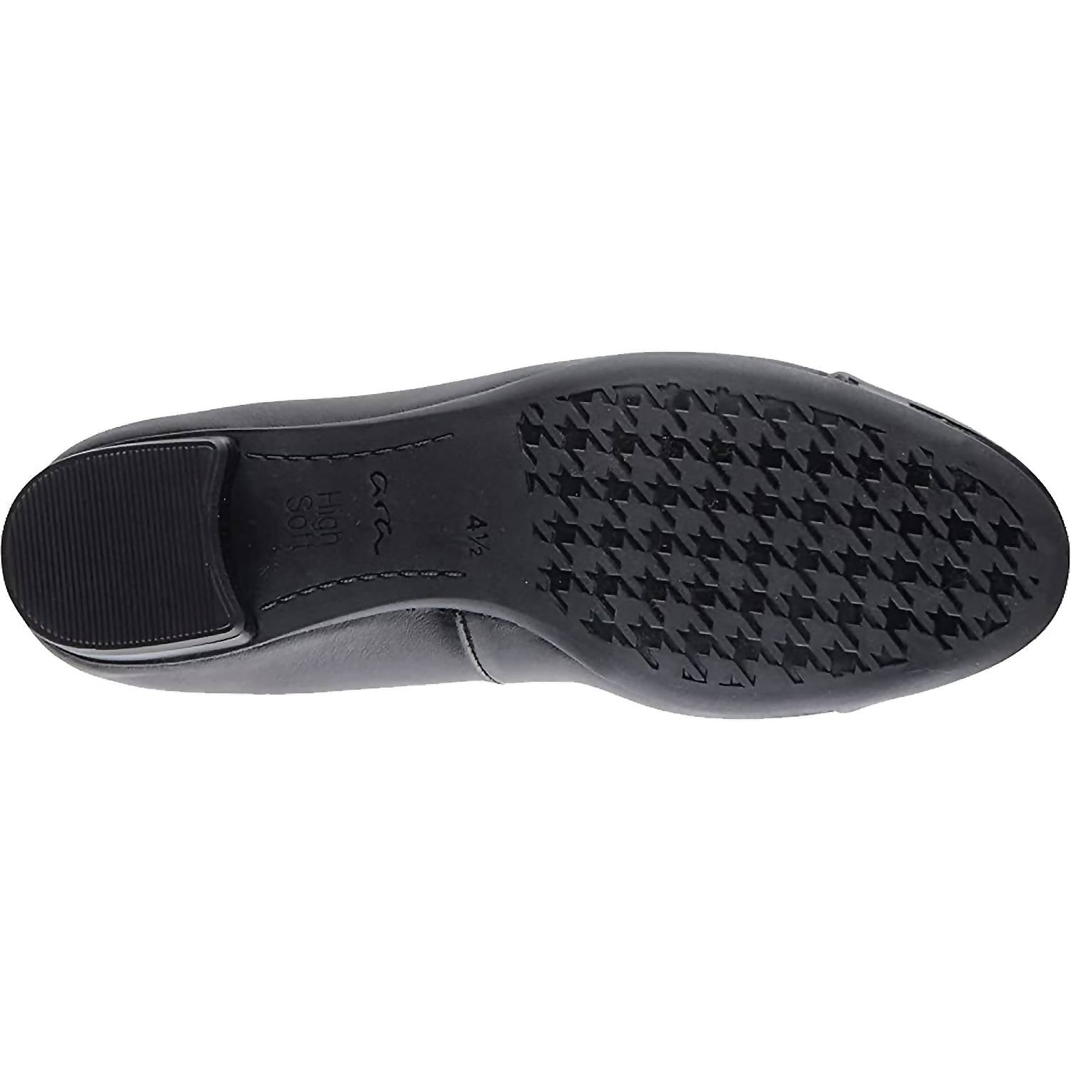 Loafers so versatile you can wear them with just about anything. Introducing the Women's Belinda Flat by Ara Shoes, a black minimalist ballet flat perfect for summer evening events. Crafted from super soft leather, this slip-on design features an almond toe with a classic cap toe detail and a delicate bow with hardware accents. HighSoft Technology and a flexible, ultra-light outsole offer superior comfort, while a padded insole with a special foam insert ensures a stress-free walk. Designed for an ideal fit with an elasticized topline and crafted to meet high environmental standards, these flats provide shock absorption and breathability for all-day comfort.