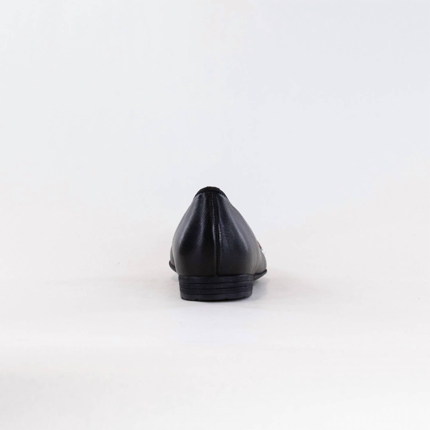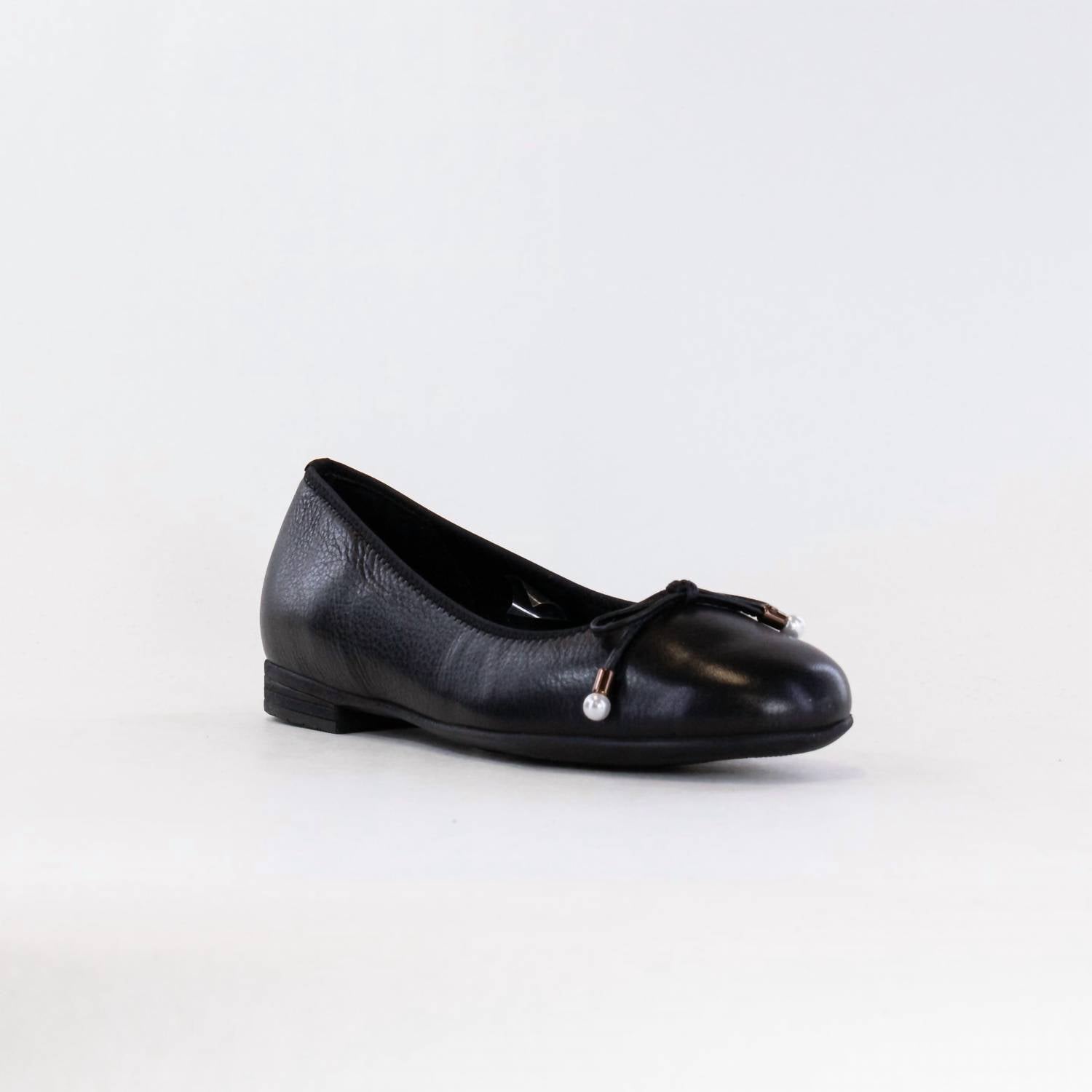 Discover the Women's Scout Bow Ballet Flat by Ara, an elegant addition to any wardrobe in versatile black. Crafted from smooth leather, these flats feature a round toe and stylish bow accent with metal aglets. Designed with a block heel and elasticized topline, they offer a comfortable fit and incorporate Ara's HighSoft technology for superior comfort. Available in US sizes 5-11.5 with a G (Medium) fitting, these minimalist flats are perfect for vacation occasions.