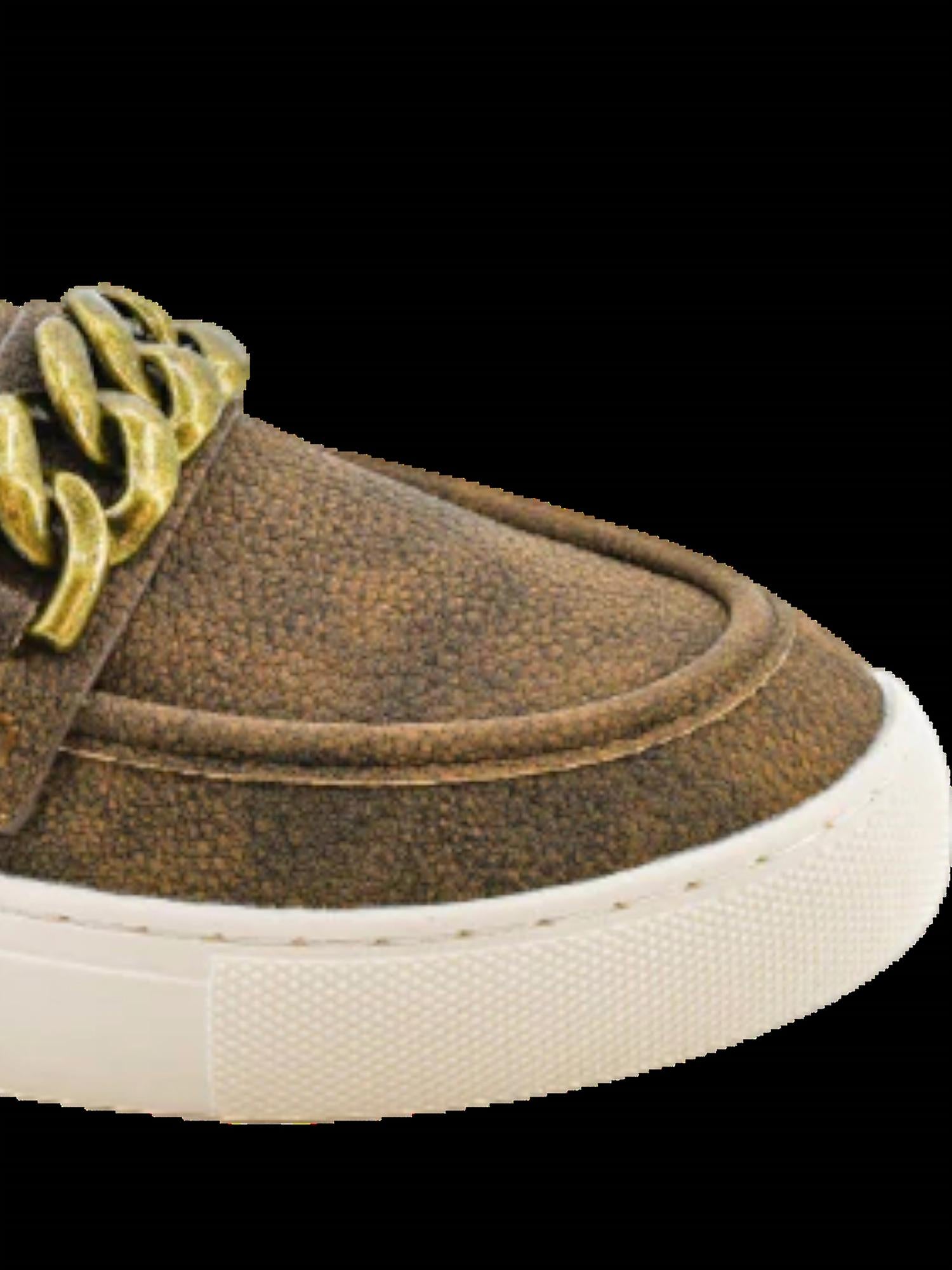 Loafers so versatile you can wear them with just about anything. Step into everyday luxury with Corkys Footwear's Women's Chain Reaction Pebbled Shoes, crafted from premium leather for a sophisticated look. These brown sneakers feature a chic chain detail and a round toe design, perfect for your summer travel wardrobe. With a flat heel height of 1 inch, they seamlessly blend comfort with style for all-day wear. Please note that half sizes should size up to the next full size.