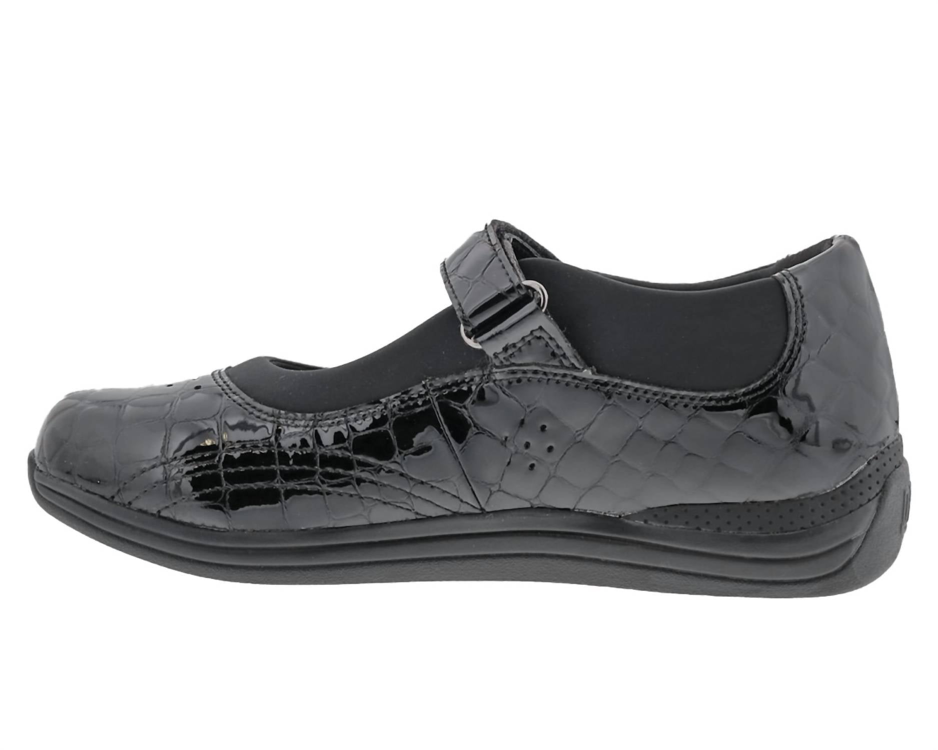 Experience the perfect blend of style and comfort with the Women's Rose Shoes by Drew. These flats feature a simple hook and loop closure, crafted from leather and stretch neoprene for a comfortable fit. Designed for ultimate support, they include the Plus Fitting System® with two removable footbeds, a removable dual-density insert, and a polyurethane slip-resistant outsole with a 1.25-inch flat heel. Ideal for a dinner party, these shoes ensure ease on your feet with their stretch fabric lining and soft, foam-padded collar.
