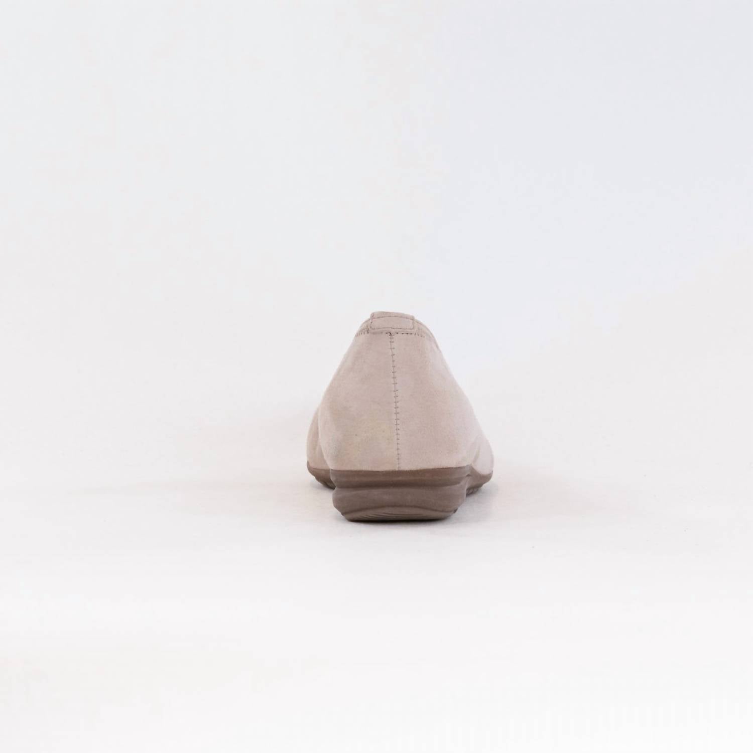 Step into elegance with the GABOR Women's Sandal in Metal Pewter, featuring a chic suede and leather upper. This ballet flat combines casual flair with comfort, thanks to its elasticized topline and soft leather lining that ensures durability. Benefit from its arch support and cushioned rubber sole, perfect for an evening event or adding a vintage touch to your spring wardrobe. It is designed with a round toe and a flat heel, measuring under 1 inch, to offer style and ease for every occasion.