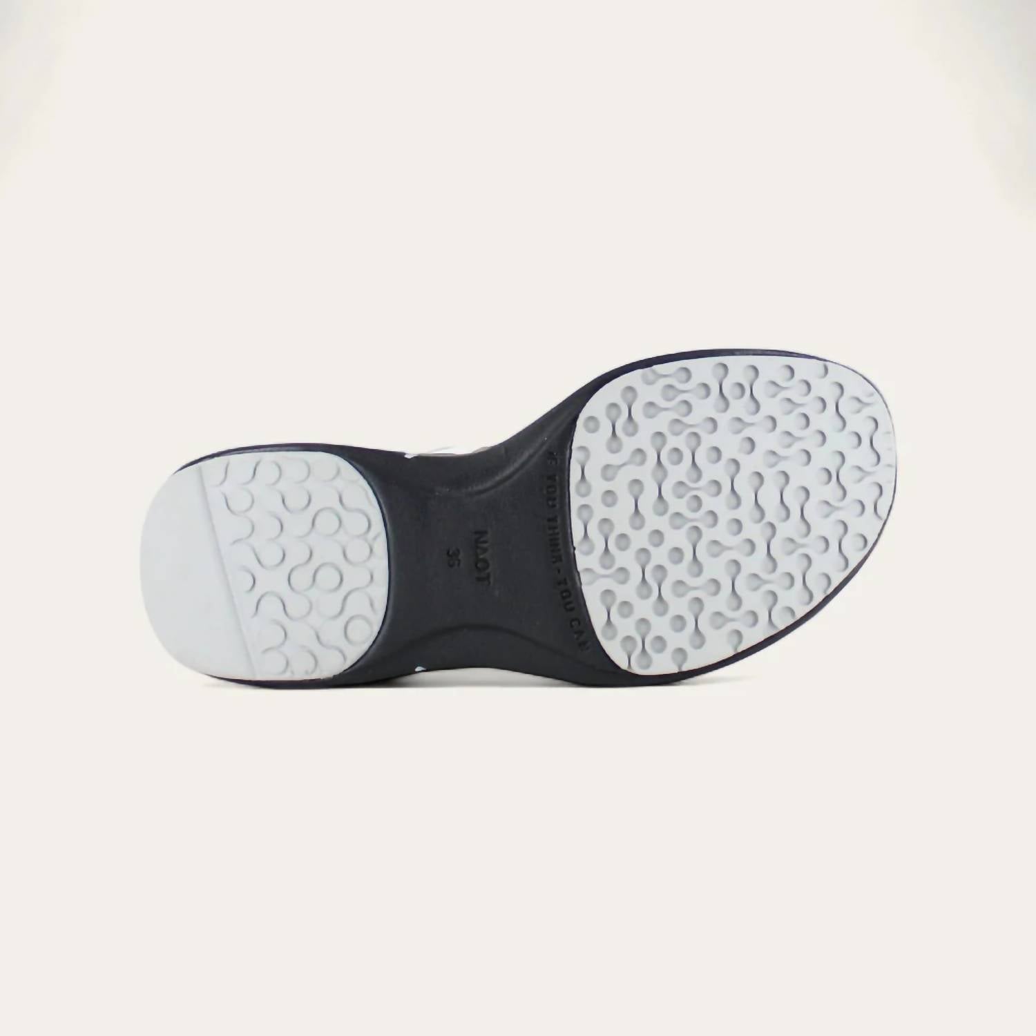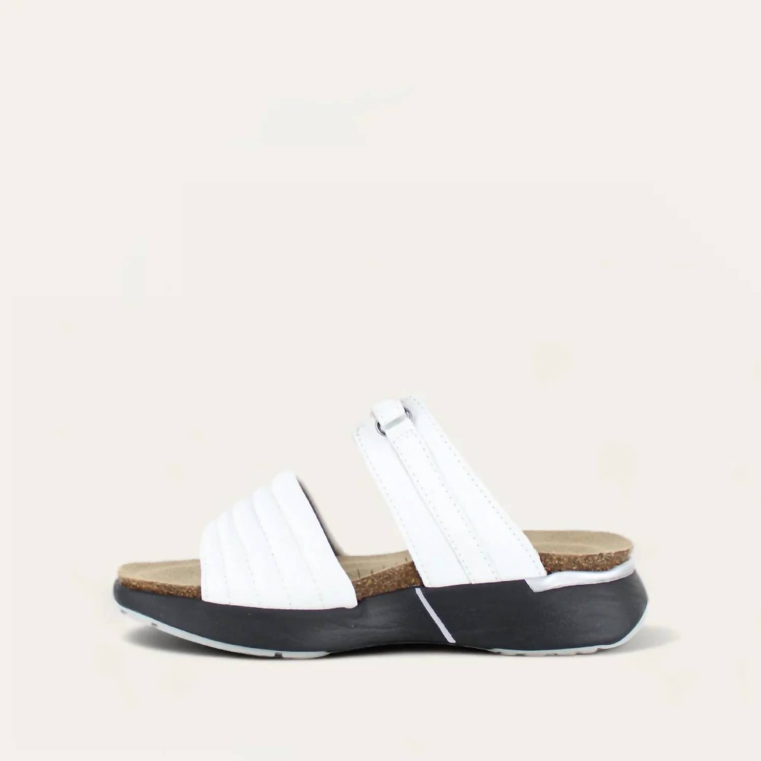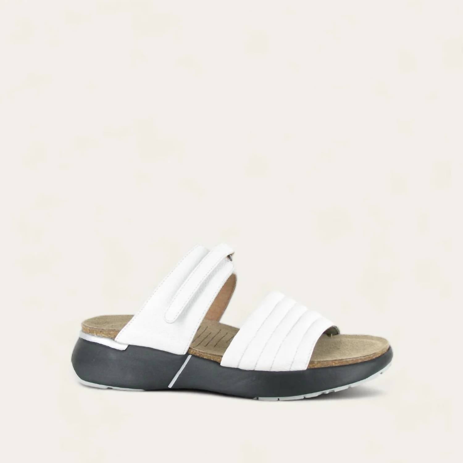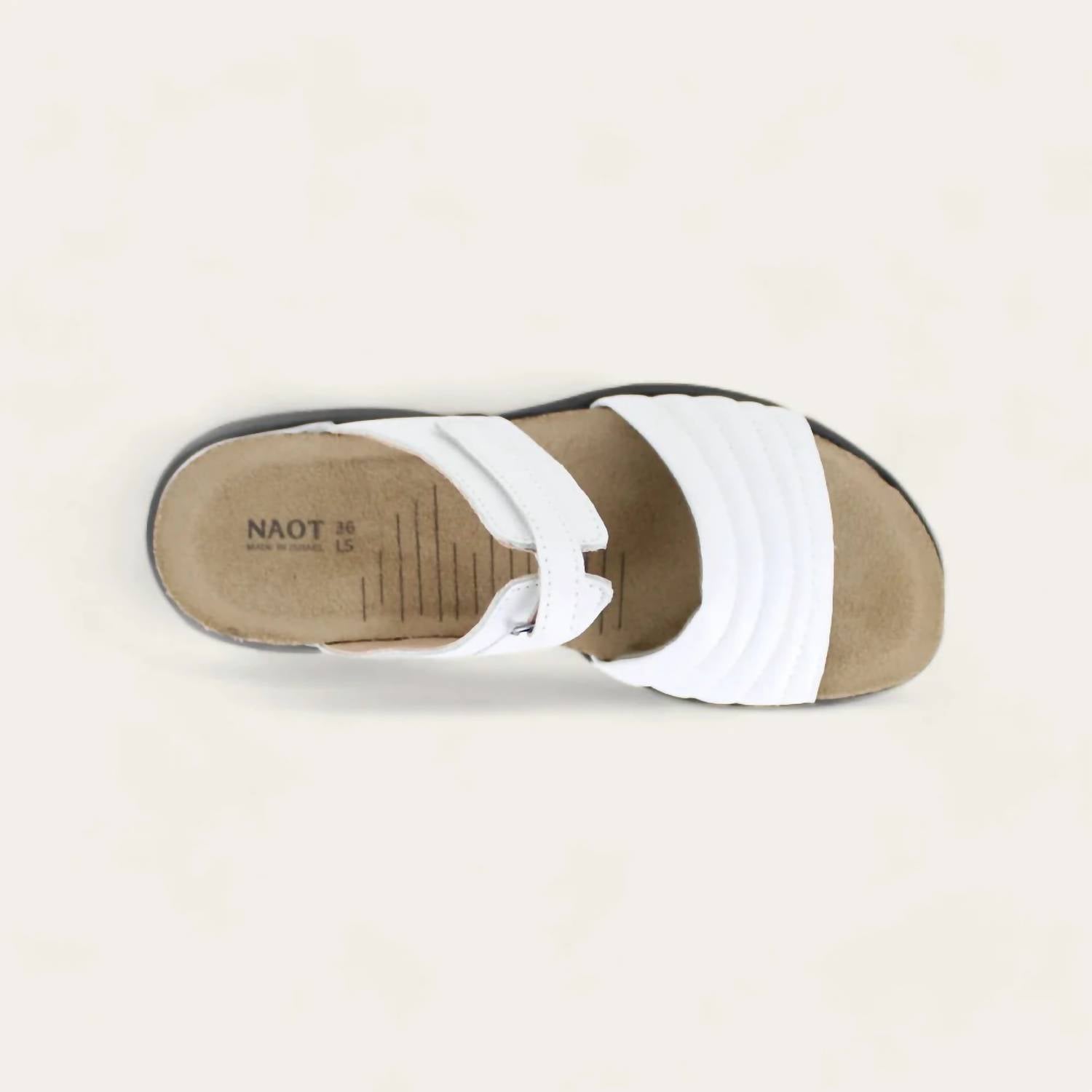 A classic loafer that is both comfortable and polished. Experience elevated comfort and style with the NAOT Women’s Vesta Sandal in Soft White Leather. Crafted from premium leather, this sandal features a 1.5" rubber sole offering excellent arch support and a lightweight feel. The anatomical cork and latex footbed molds to your foot, promising comfort for everyday wear. Designed with medium width and a true-to-size fit, it's the perfect minimalist accessory for any summer dinner party.