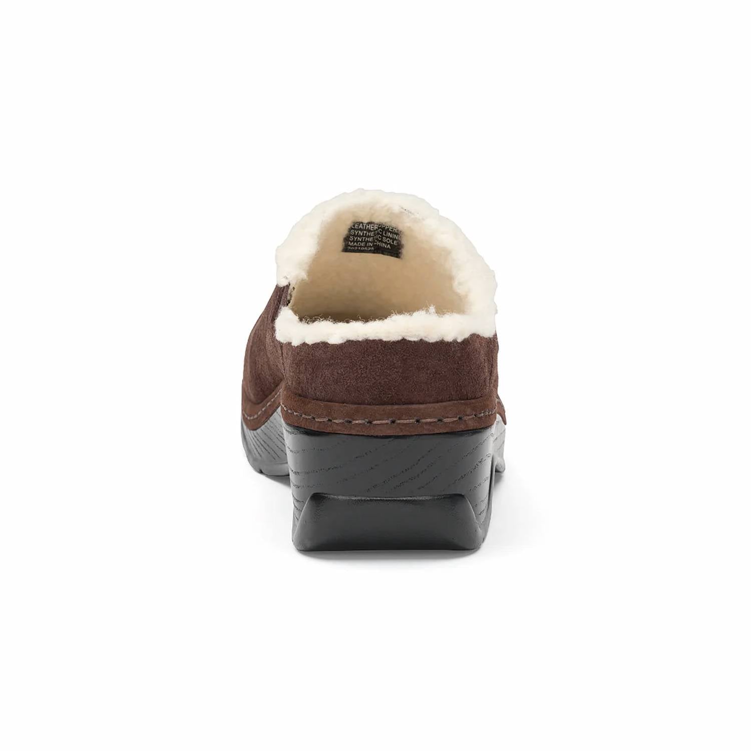 Discover all-day comfort and style with the Women's Munich Clog by Klogs Footwear, available in a rich Potting Soil color. Designed with premium suede, this footwear features a traditional closed-back design with a roomy round toe, perfect for orthotic inserts. Its impressive 1.75-inch heel height is supported by a TRUComfort® insole for arch support and a lightweight TRUBase® outsole that flexes with your every move. The slip-resistant PURGrip® treads ensure stability on wet and oily surfaces, making these clogs ideal for the winter season.