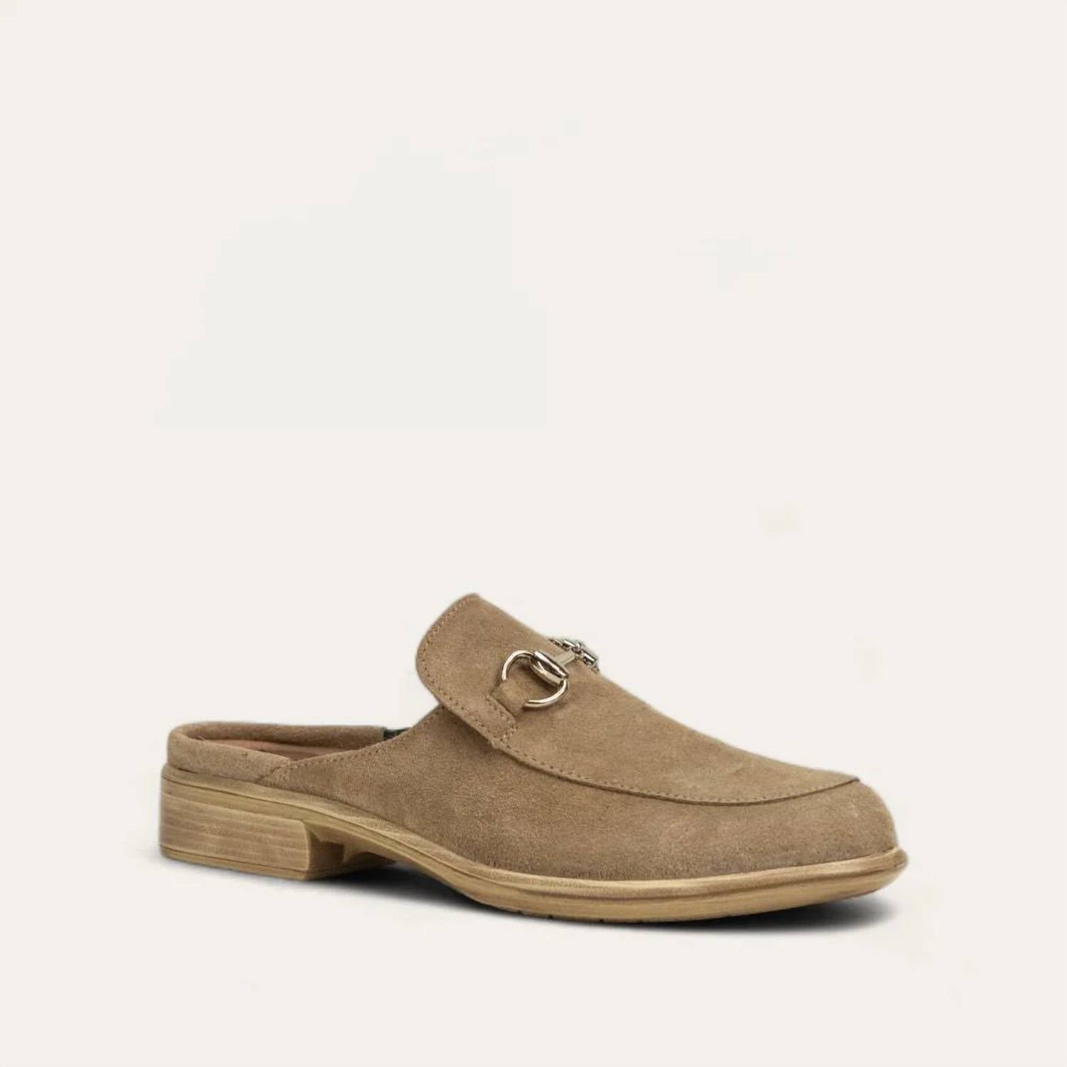 Elegantes, confortáveis ​​e versáteis. Não encontramos nada de errado com eles. Eleve sua coleção de calçados com a Mule Halny Suede Feminina da NAOT, uma escolha chique na cor Amêndoa. Confeccionada em couro premium e com palmilha removível de cortiça e látex, esta mule oferece suporte e amortecimento anatômicos. O solado leve e antiderrapante de poliuretano e a haste de metal garantem estabilidade, enquanto o salto bloco de 3,8 cm proporciona um salto estiloso. Parte da Coleção Aura da NAOT, estas mules oferecem conforto e durabilidade de largura média para uso versátil durante todo o dia.