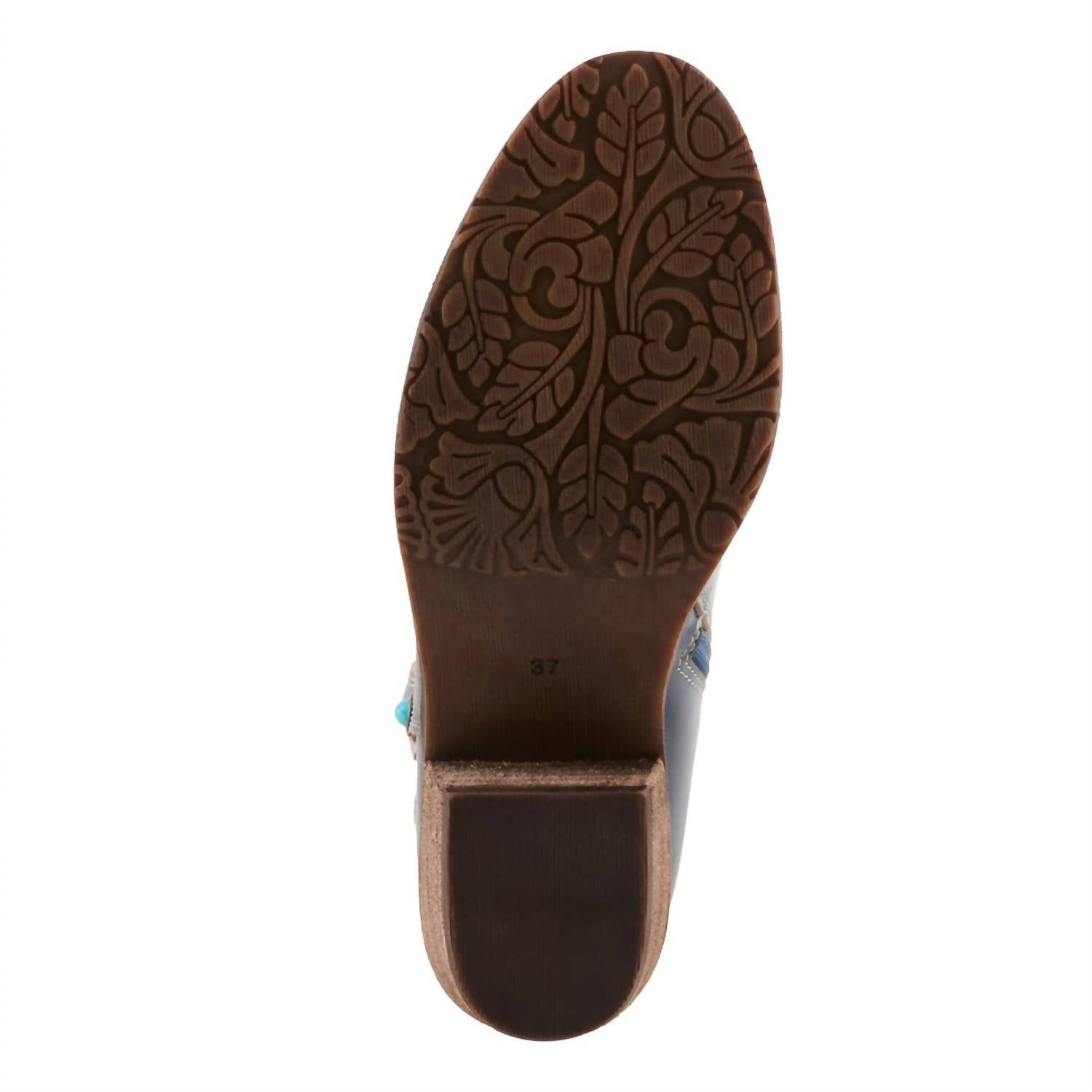 A stylish boot with a comfortable fit and the perfect amount of height. These classic boots are the perfect addition to any outfit and can be worn season after season. These boots are crafted from hand-selected leathers, showcasing hand-painted, hand-embossed designs that capture the elegance of wispy leaves and blooms. The fashion-forward cowgirl style features a front yoke, a cabochon embellished pull tab, and convenient inside zipper closure, all standing on a 2" heel for added height and style. Designed for the sophisticated adult woman, these boots are a perfect addition to your wardrobe for an elegant and unique statement.