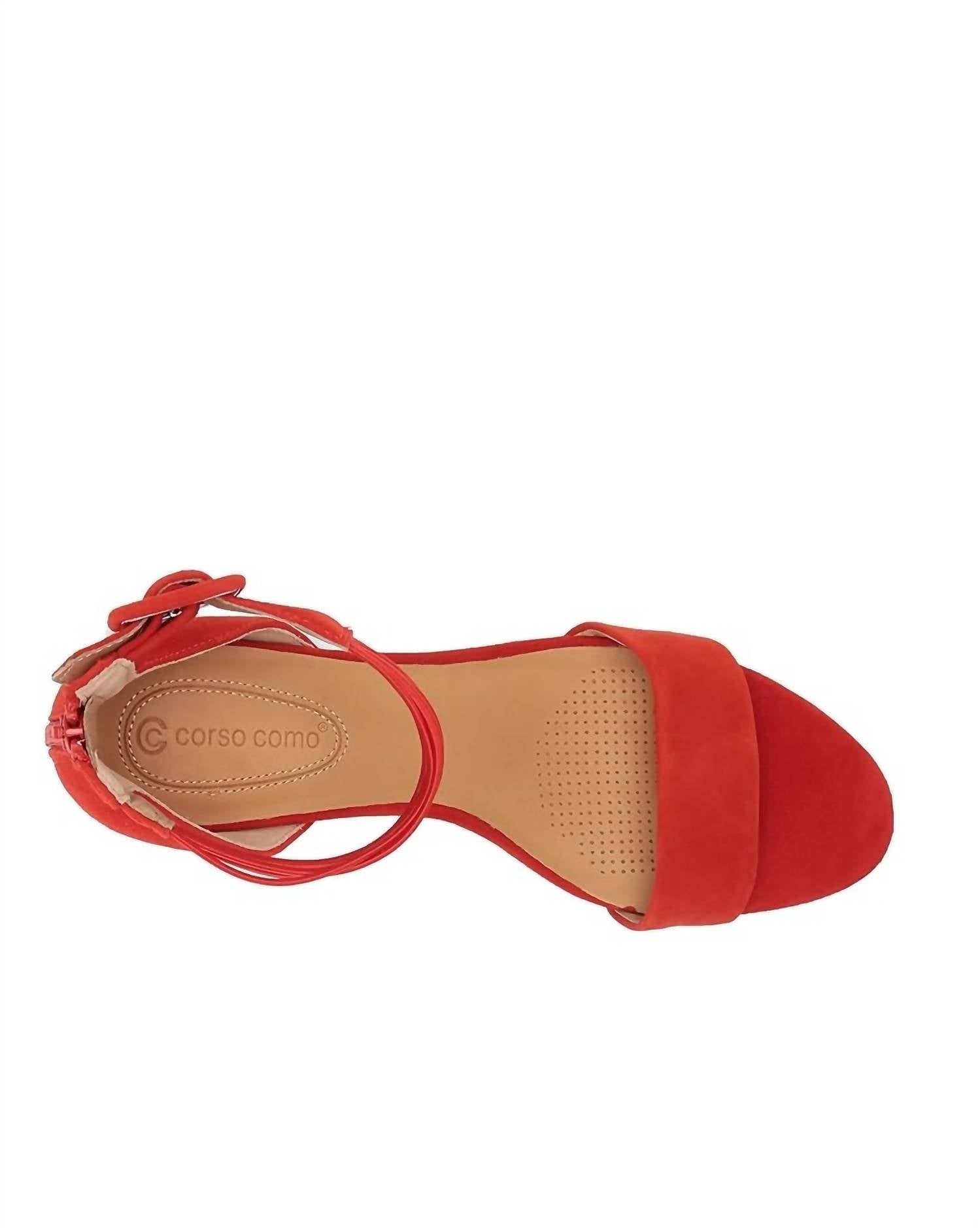 Pair these beauties with your favorite skinny jeans or dress for a night out on the town. Introducing the Women's Louisah Heel by Corso Como, a stunning choice in a vibrant Fire color perfect for any special occasion. These heels feature a block heel style and an open toe design, providing both elegance and comfort. Made with synthetic materials and secured with a buckle closure, they offer a stylish finish to your anniversary outfit.