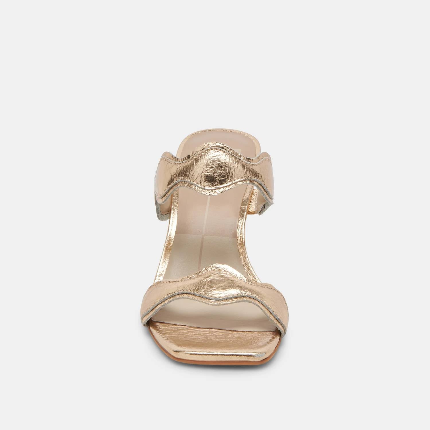 Seja o centro das atenções com os Saltos Ilva da Dolce Vita, onde o estilo encontra a sofisticação. Confeccionados com um cabedal luxuoso em couro e um salto bloco marcante de 8,1 cm, estes saltos apresentam tiras recortadas para um toque de elegância. A meia e o forro contam com uma alternativa em couro à base de água para conforto sem concessões. Perfeitos para qualquer festa, estes saltos abertos dourados foram projetados para serem a sua peça de destaque.