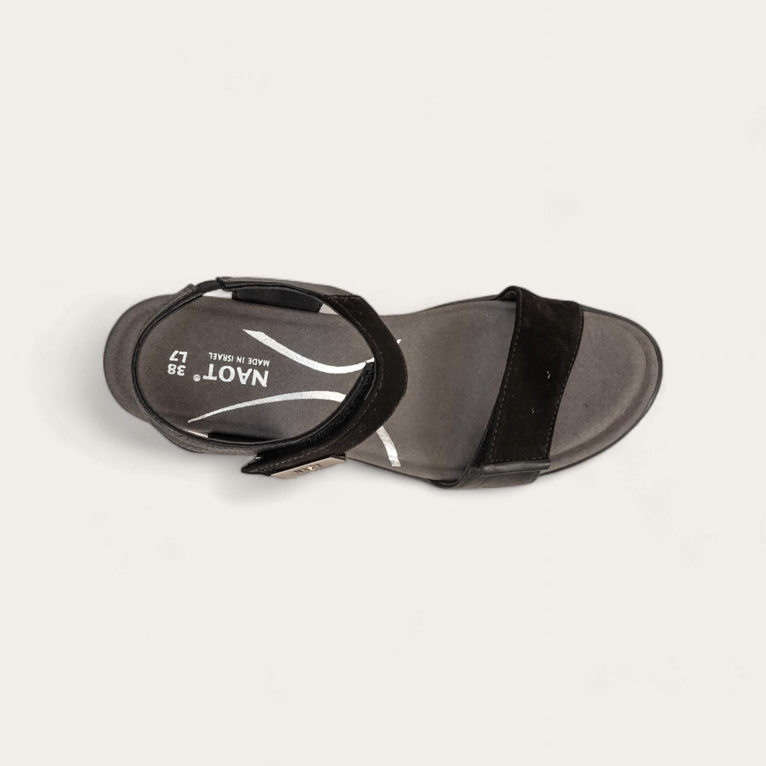 Step into elegance with the Women's Intact Heel by NAOT, featuring double hook and loop straps that ensure complete adjustability for the perfect fit. Crafted in chic black nubuck and soft black leather, this minimalist vacation essential exudes sophistication while its 2-inch block heel adds a dressy touch without the discomfort. Made from durable polyurethane, the shoe boasts an open toe design complemented by NAOT's anatomic cork and latex footbed, which is enveloped in suede to adapt to your foot's shape with wear. Ideal for summer occasions, the Intact Heel offers both style and comfort in a sleek, low-profile form.