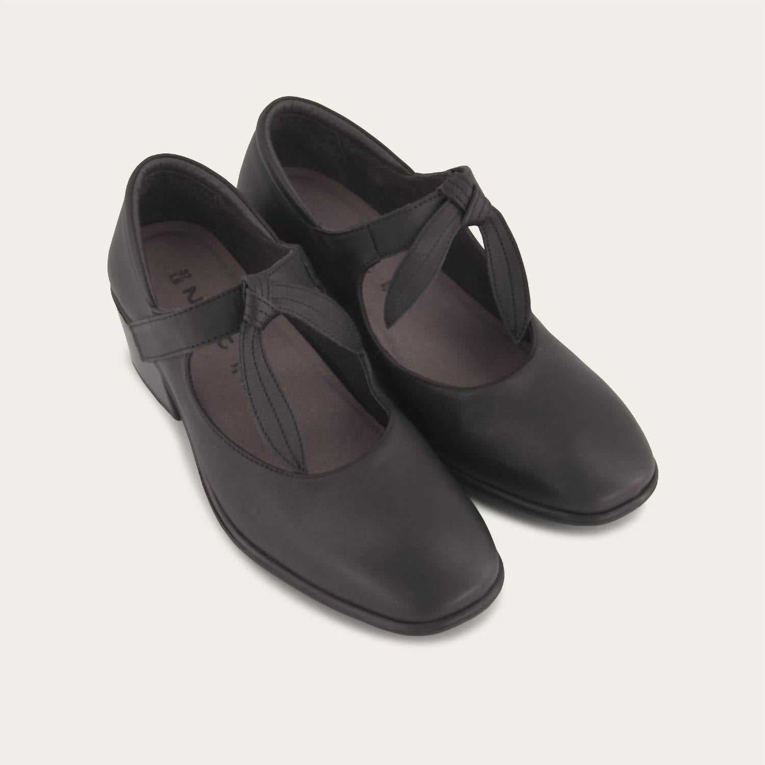 Este sapato é estiloso e prático. Possui uma tira com laço que você pode remover para mudar o visual. O solado é firme e oferece suporte, e a palmilha interna pode ser removida para torná-lo mais confortável. É ótimo para usar com roupas casuais e formais.