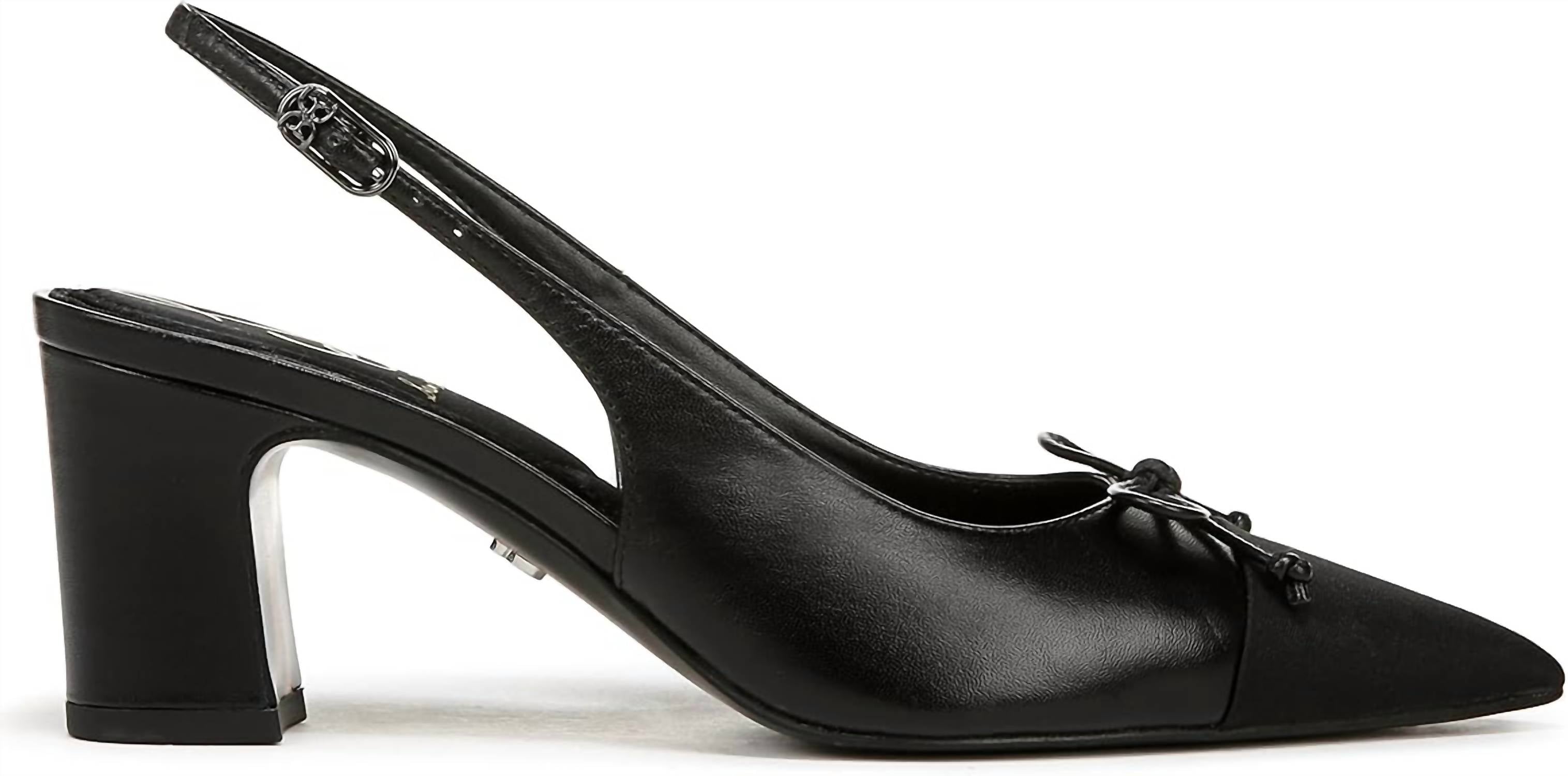 Combine essas belezas com sua calça jeans skinny ou vestido favorito para uma saída à noite na cidade. Este slingback traz um toque de estilo a uma silhueta clássica, com bico fino e um charmoso detalhe de laço. Com um confortável salto bloco de 6 cm, este modelo versátil transita perfeitamente do brunch para a sala de reuniões. Confeccionado em uma mistura de couro, tecido e materiais sintéticos, com palmilha sintética macia para uso o dia todo.