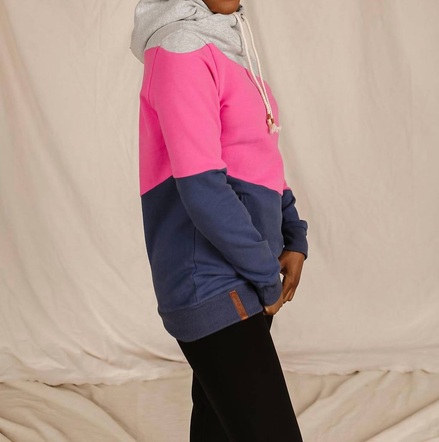 Cozy fabric, impeccable design - Meet the sweatshirt that you'll never want to take off. The Magic Happens Hooded Sweatshirt by AMPERSAND AVE offers a cozy long sleeve design with a stylish heather grey, bright pink, and blue/purple tri-panel pattern. Crafted from a soft cotton blend, it features a fleece-like lining for extra comfort and warmth. This pull-on style is enhanced with practical pockets and a hooded neckline. Easy to maintain, simply machine wash and line dry to keep it in perfect condition. Delight in its vibrant maximalist trend perfect for all-year round vacations.