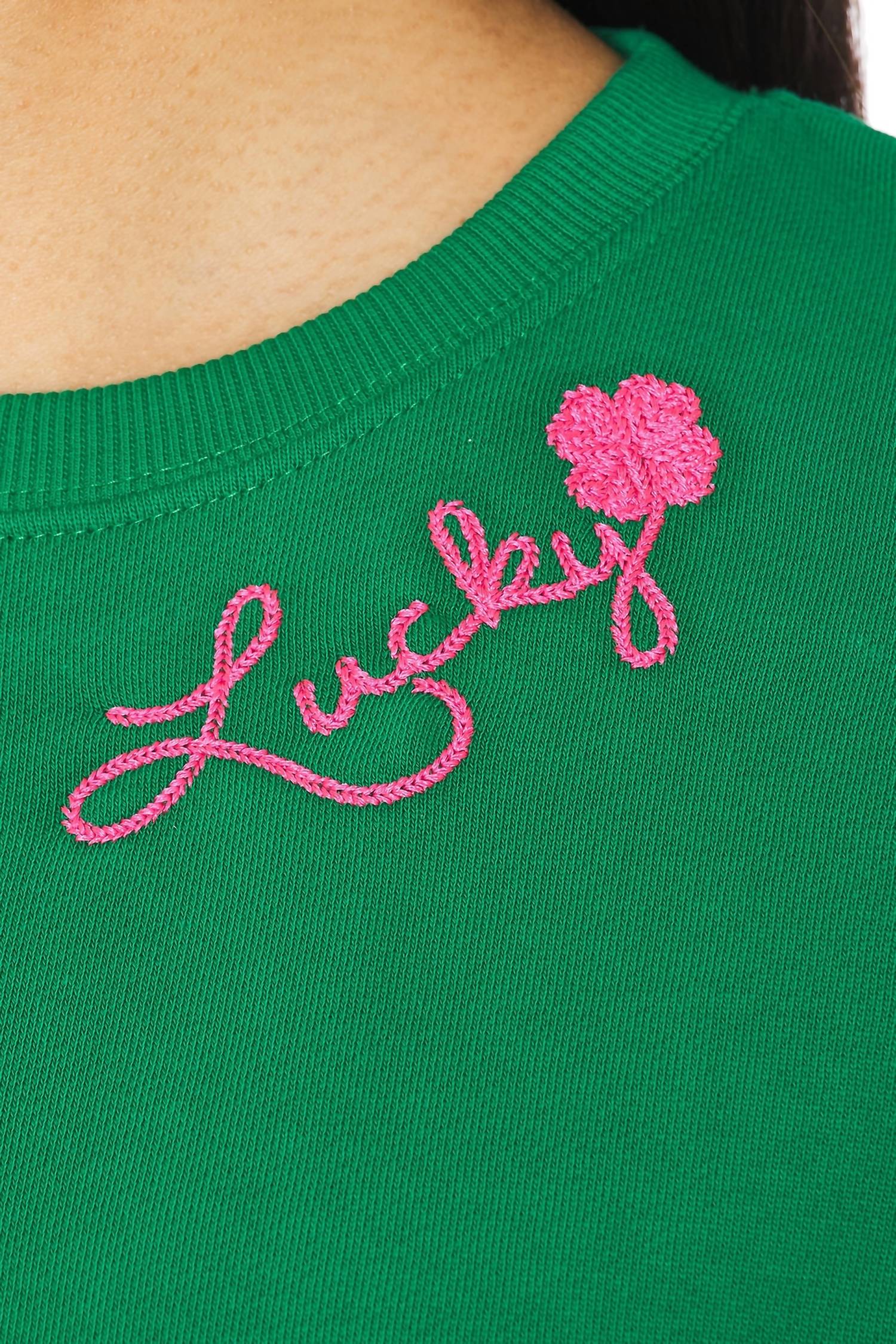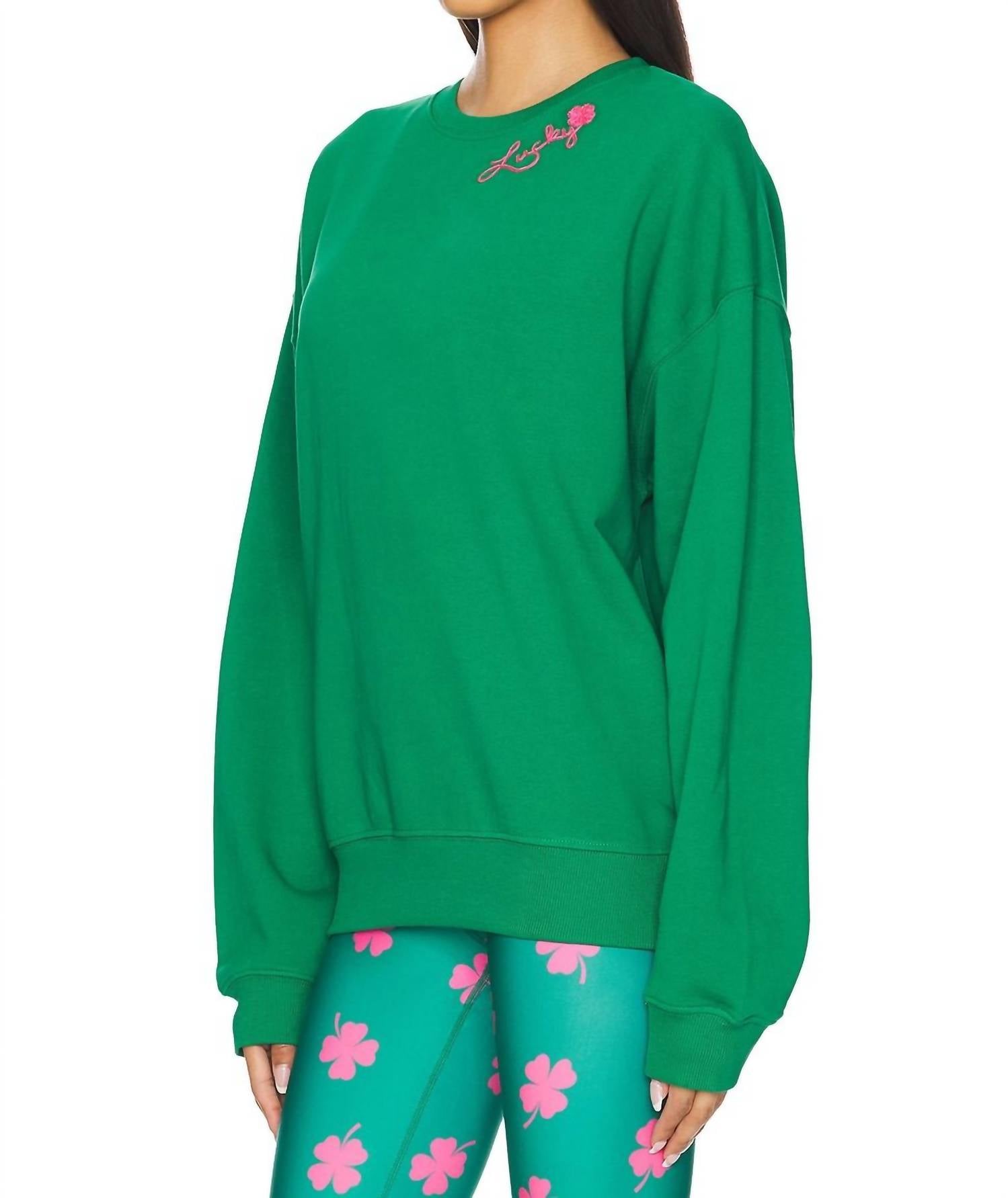 Abrace o conforto e o estilo com o Moletom Oversized Devyn da Beach Riot na marcante cor Lucky Clover. Esta peça de manga comprida é confeccionada em 100% algodão e conta com detalhes canelados na gola, punhos e bainha para um ajuste confortável. Fabricado na Índia, o moletom apresenta um design gráfico oversized com o detalhe "Lucky" costurado abaixo da gola. Fácil de vestir. Lavável à máquina.