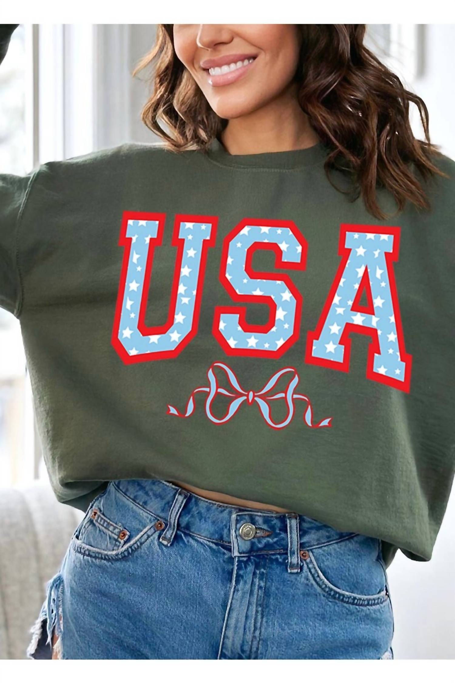 Abrace seu espírito patriótico com o moletom de lã Bella Closet USA, disponível em um verde estiloso. Este moletom apresenta mangas compridas e uma estampa ousada e oversized com um laço dos EUA, confeccionado em uma mistura aconchegante de algodão 50% algodão e 50% poliéster. O design pull-on facilita o uso, enquanto a gola redonda adiciona um toque clássico. Perfeito para manter você aquecido e estiloso, esta peça não inclui instruções de lavagem ou secagem.