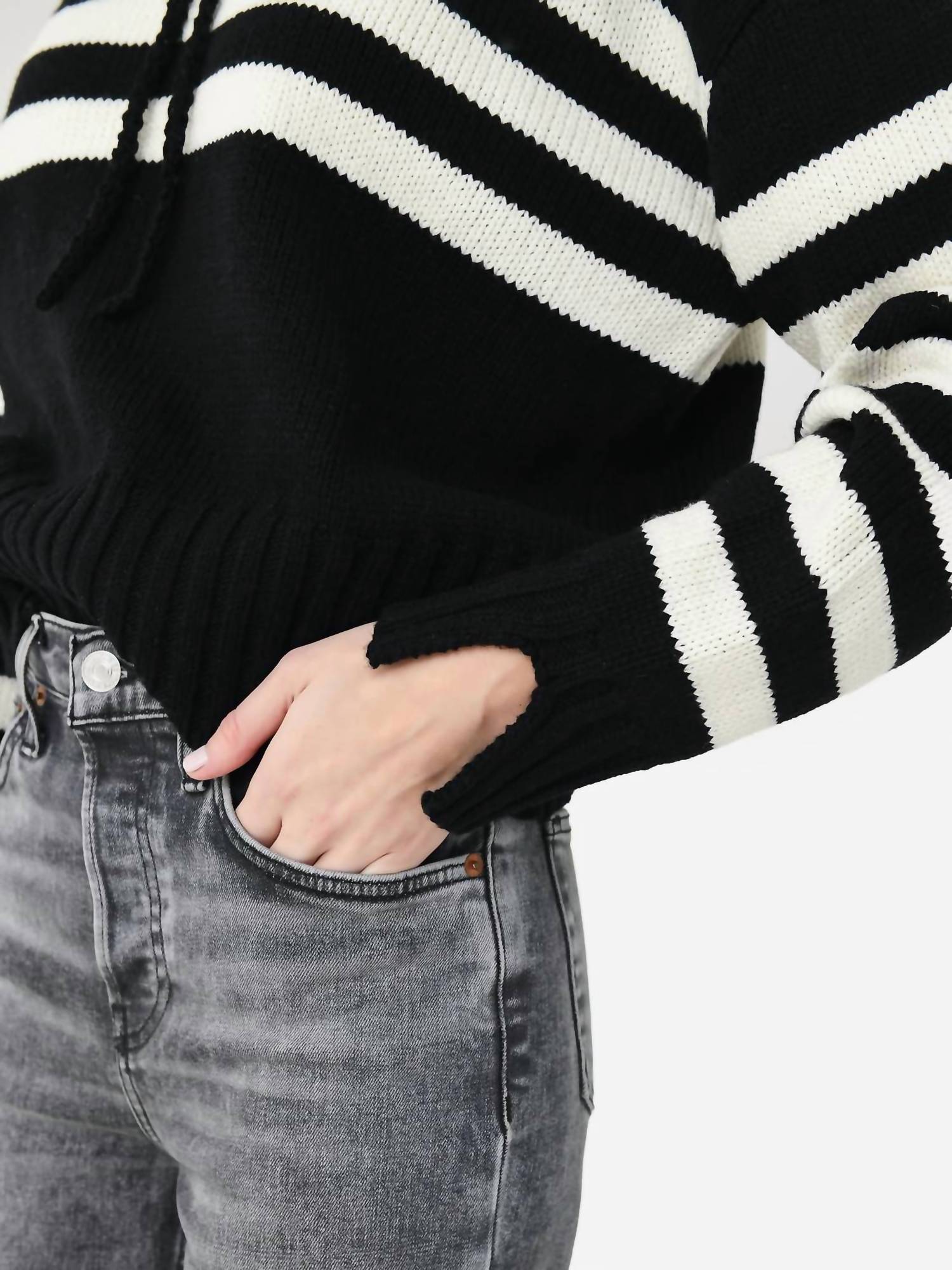 Não importa se você está correndo pela cidade ou relaxando em casa, este moletom serve para ambos. Experimente o conforto incomparável do moletom com capuz Tiago da Ciao Lucia, confeccionado para mulheres em uma luxuosa mistura de lã merino. Este moletom com capuz preto de mangas compridas apresenta listras brancas contrastantes, adicionando um toque marcante ao seu design atemporal. Composição: 70% lã merino extrafina, 30% poliéster reciclado, garantindo conforto e sustentabilidade. O fecho pull-on realça o visual chique e descontraído, tornando-o a escolha ideal para qualquer ocasião.