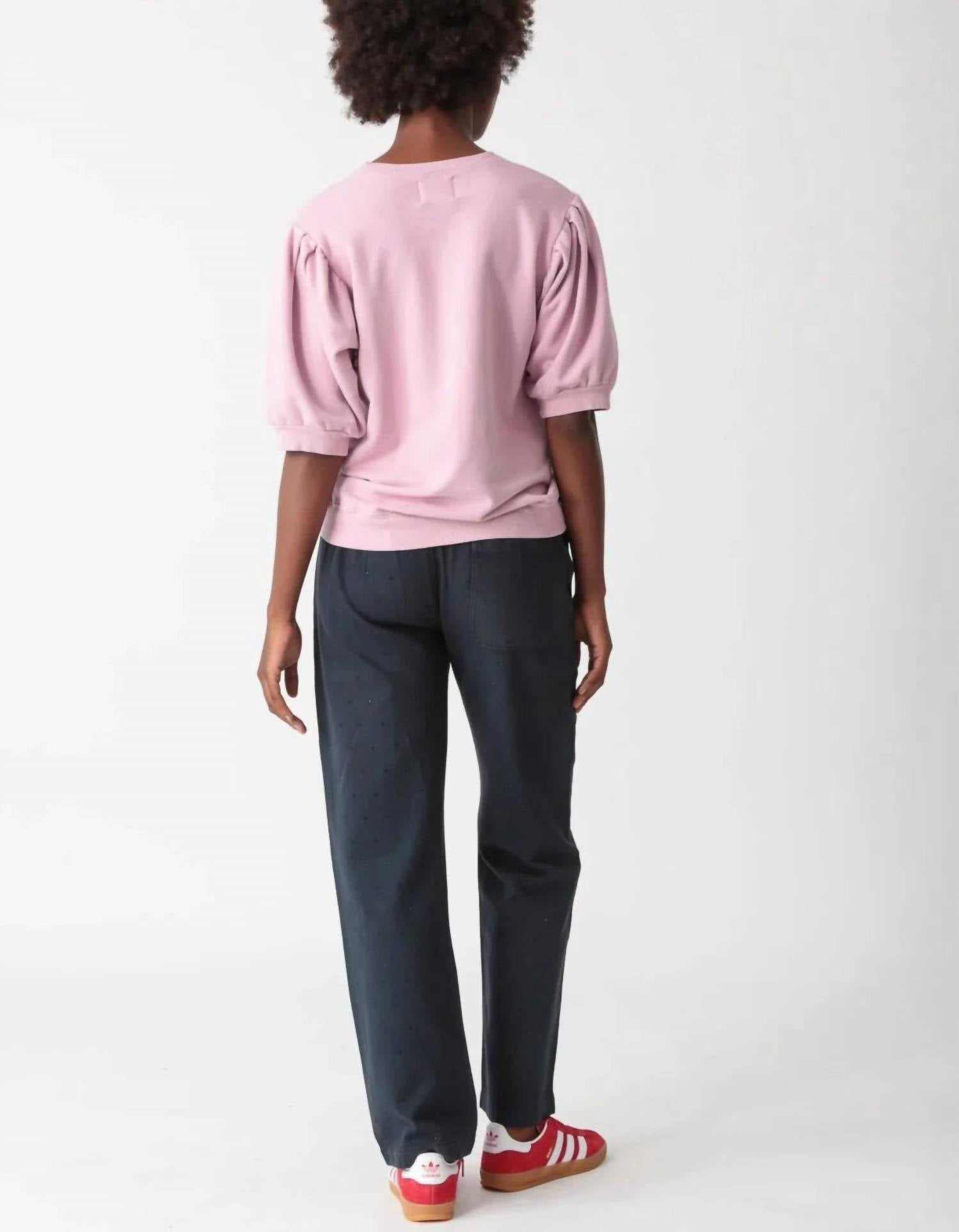 Não importa se você está correndo pela cidade ou relaxando em casa, este moletom serve para ambos. Descubra o moletom Electric & Rose Casey, uma mistura perfeita de conforto e estilo em um tom lilás encantador. Desenhado com mangas até o cotovelo e confeccionado em uma luxuosa mistura de algodão Pima, modal e elastano, este moletom oferece um caimento relaxado e uma textura macia de fleece vintage. Fabricado nos EUA, possui um fecho prático e um design clássico de gola redonda. As instruções de cuidado incluem lavagem à máquina e secagem em tambor.