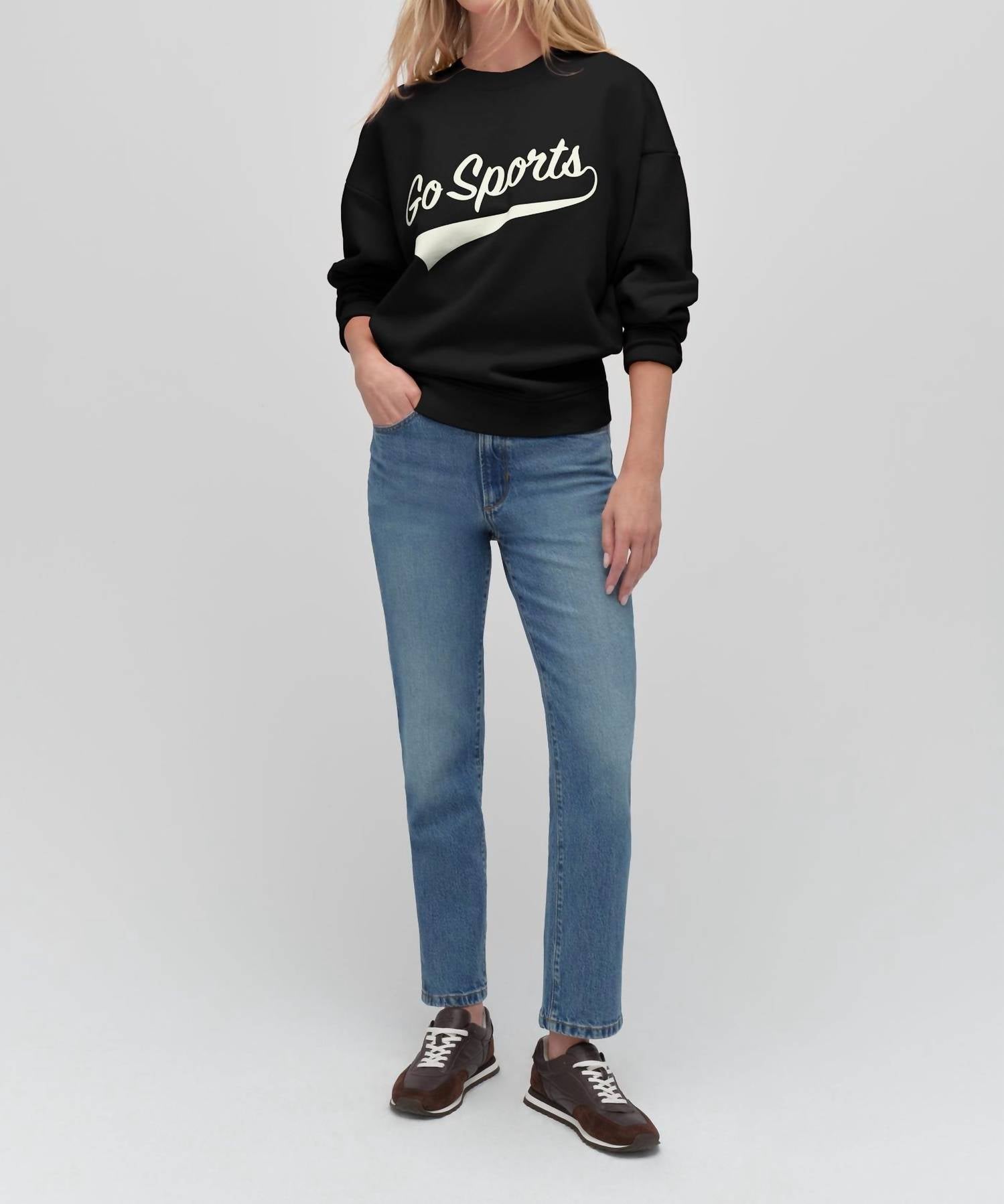 Whether you're running around town or lounging at home, this sweatshirt works for both. Introducing the Go Sports Sweatshirt by Favorite Daughter, a retro-inspired classic for a sporty, laid-back look. This royal blue and white graphic sweatshirt features long sleeves with a drop shoulder design and an oversized, relaxed fit. Crafted from a comfortable cotton blend, it is easy to wear with its pull-on closure. Care: Machine wash.
