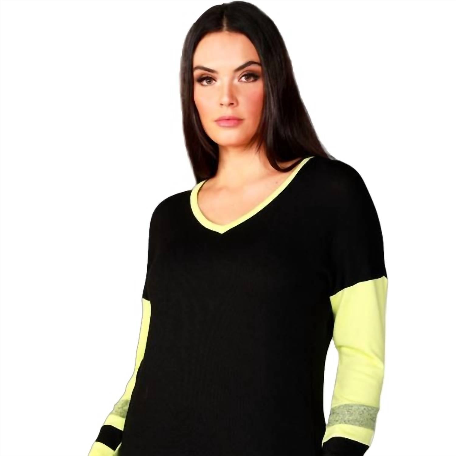 French Kyss - Blusa Color Block com Decote em V e Listra