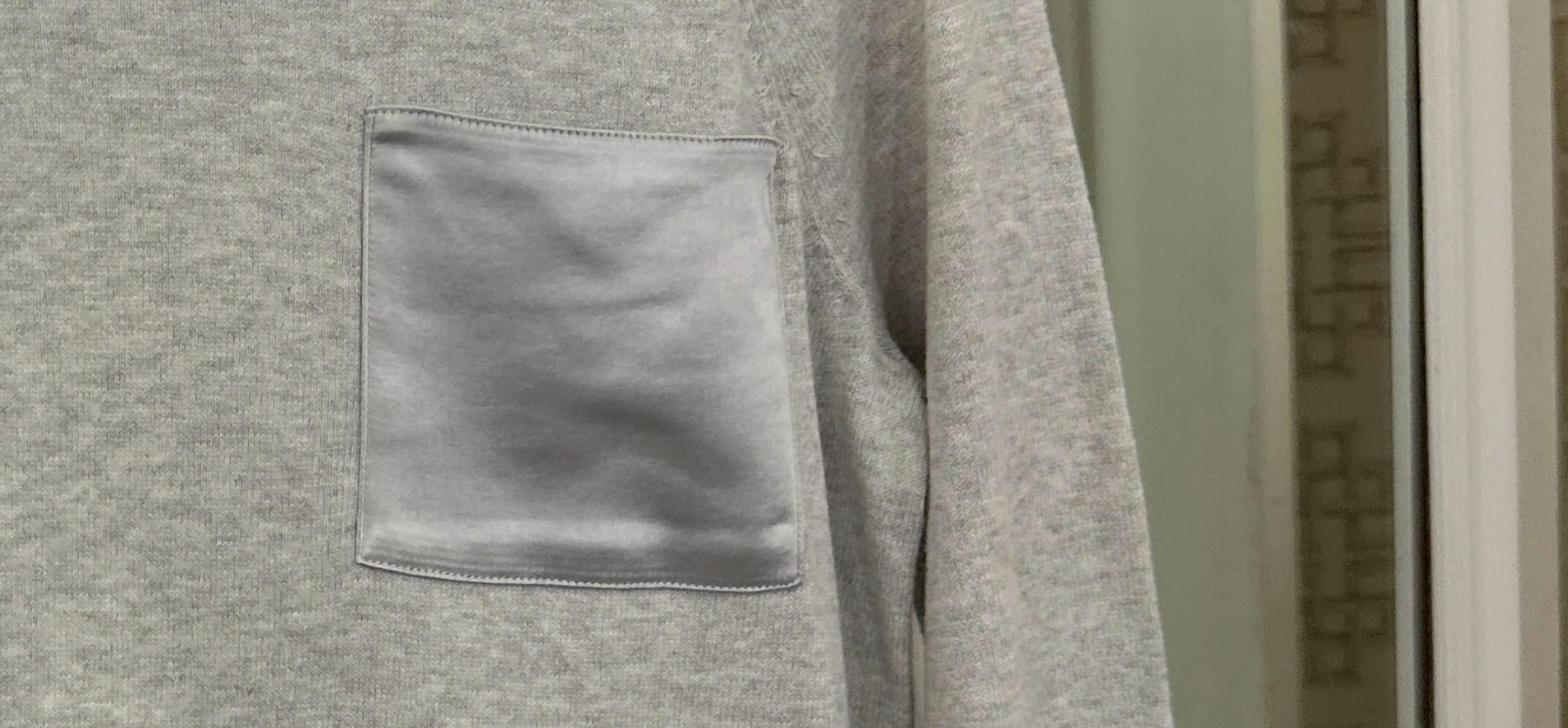 Introducing the Women's Crewneck With Satin Pocket Sweatshirt by J. Society, a chic addition to your wardrobe in an elegant silver shade. Featuring a long sleeve design, this sweatshirt is crafted from cotton, offering comfort and style. The solid pattern is accentuated by a luxurious satin pocket and a classic crewneck. Closure: Pull on. Care: Hand wash and lay flat to dry.