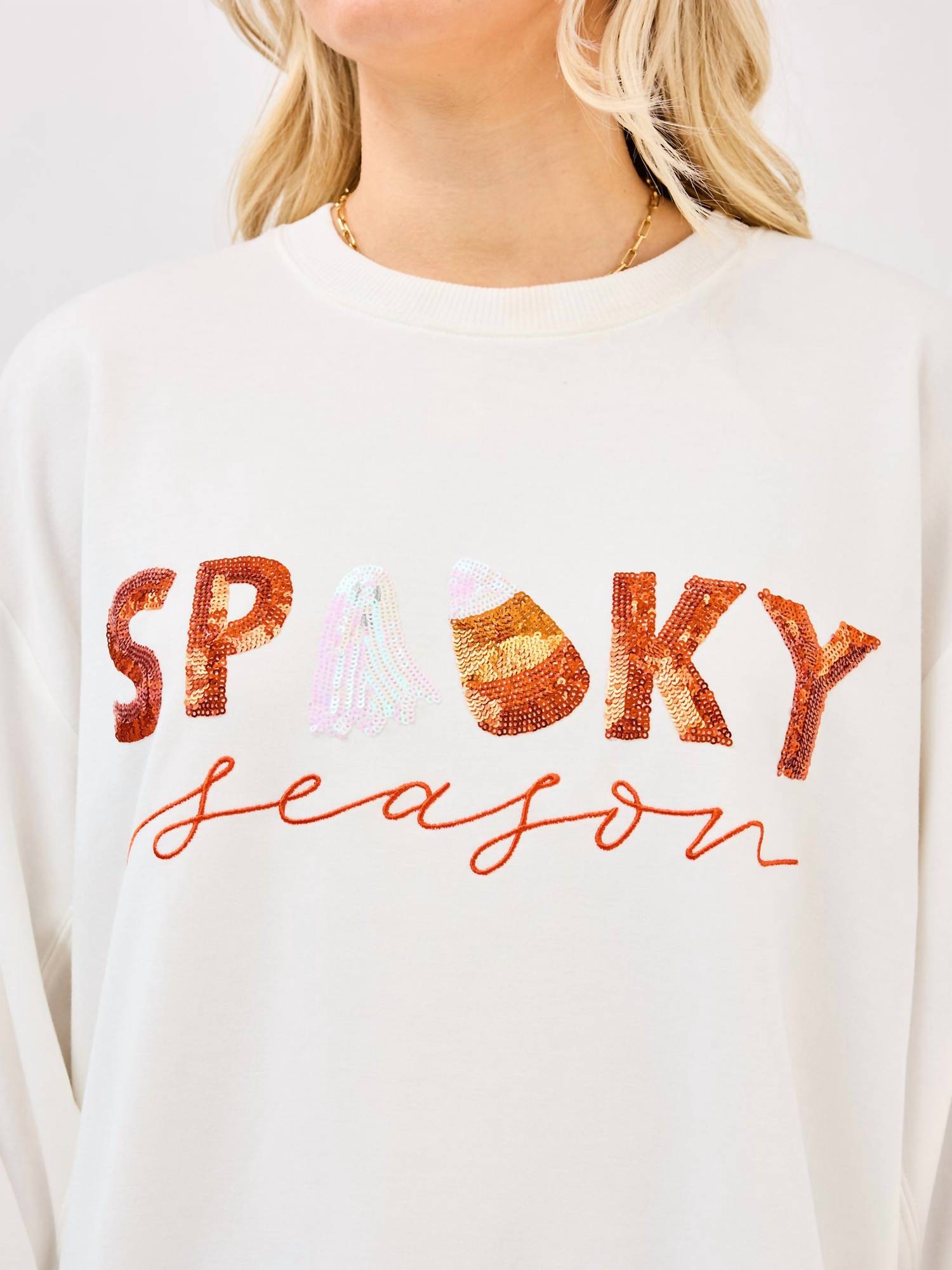 Celebrate the season with the Spooky Season Sweatshirt by Mary Square, crafted for comfort and style. This women's festive piece features long sleeves and a crewneck design with playful graphics to capture the Halloween spirit. It is made from a soft blend of 62% Polyester, 33% Rayon, and 5% Spandex and is 25 inches in length for a relaxed fit. The pull-on closure ensures ease of wear, while care instructions recommend hand washing and laying flat to dry for longevity.