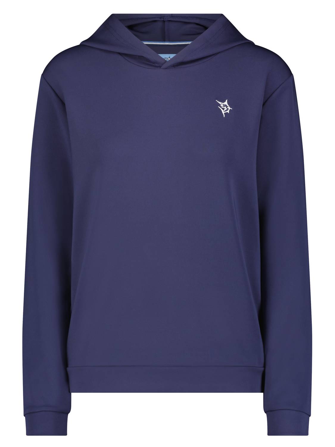 Não importa se você está correndo pela cidade ou relaxando em casa, este moletom serve para ambos. Experimente um conforto incomparável com o moletom Hillside Performance Hoody da White Water Life, criado especialmente para comemorações em dias de jogos. Este moletom feminino possui mangas compridas e gola com capuz, apresentando um tecido técnico de desempenho médio, na cor azul-marinho. Projetado com elasticidade em quatro direções, é macio por dentro e liso por fora, com um logotipo bordado no lado esquerdo do peito. Fecho: Puxe para vestir sem esforço.